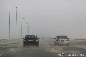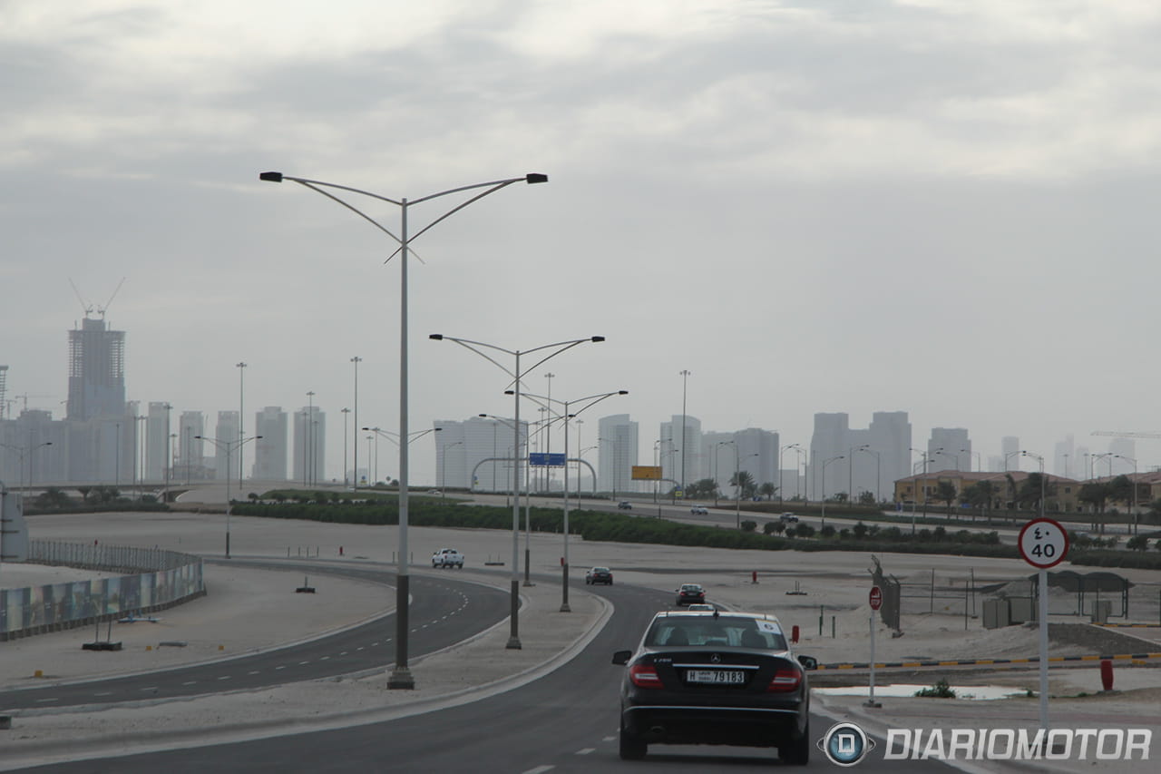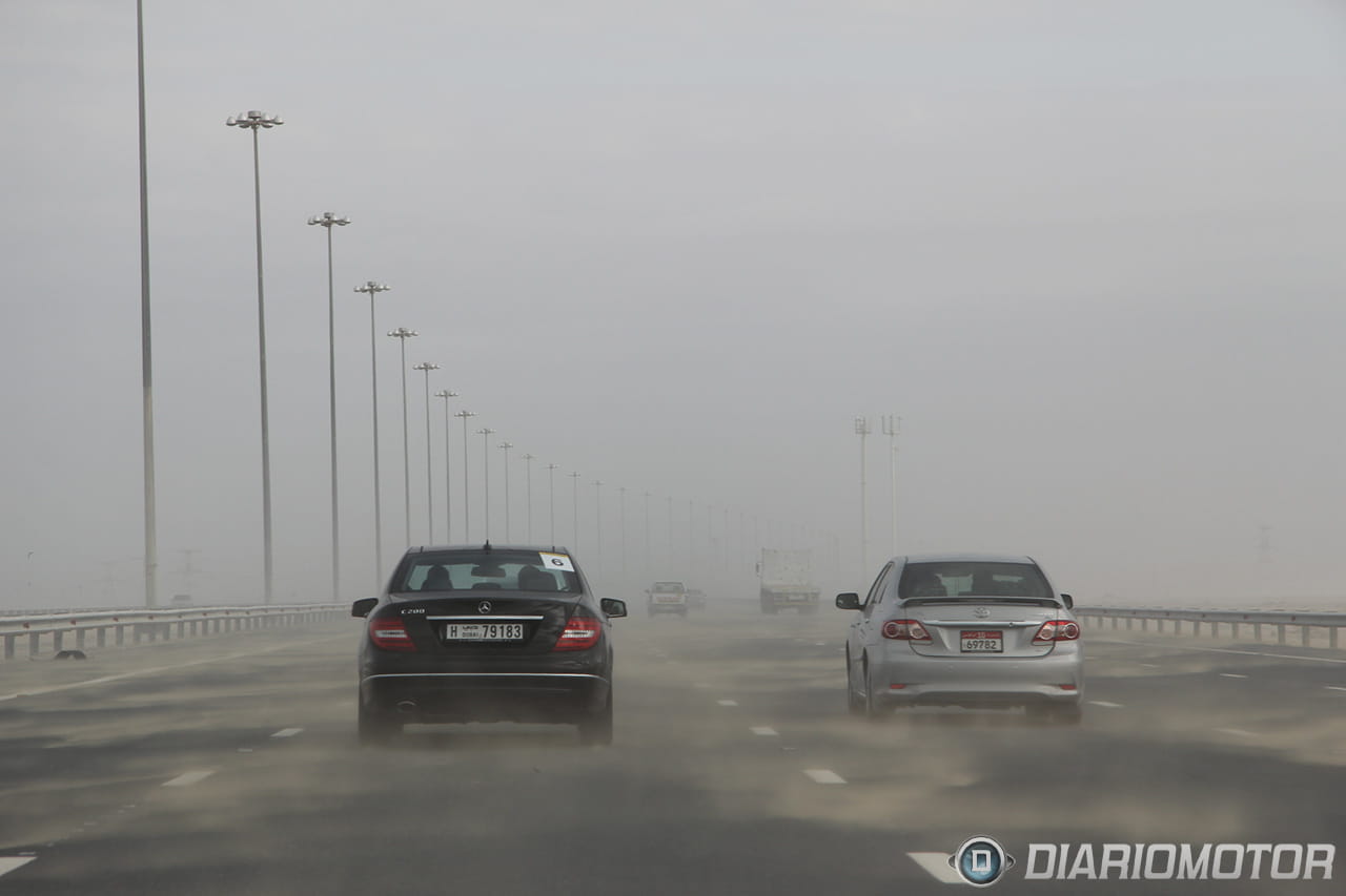 Llegaba el momento de conducir por carretera abierta en las inmediaciones del circuito Yas Marina, donde se celebra el Gran Premio de Fórmula 1. En realidad fue un paseo breve principalmente por autopista, con la particularidad de que el viento movía gran cantidad de arena. Os diría que era una tormenta de arena, pero me imagino que quien viva allí lo calificaría como suave brisa sin importancia.