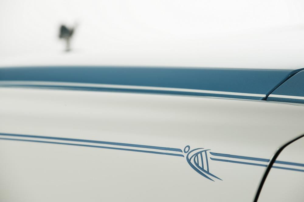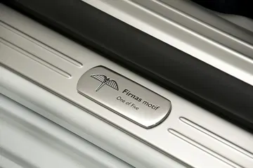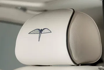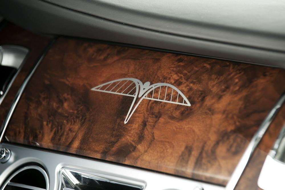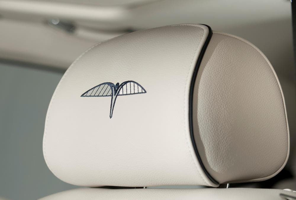 El logotipo identificativo de la edición nos lo encontramos bordado en los reposacabezas de los asientos delanteros, que van tapizados en cuero de color blanco a juego con el exterior. Este logotipo también está presente en la consola central, en la pieza de madera que cubre la pantalla del navegador cuando está oculta. En la zona superior de los paneles de las puertas laterales se muestra otro motivo alado inscrito sobre la madera. Por último, en el recibidor de la puerta se muestra el número de la serie limitada.