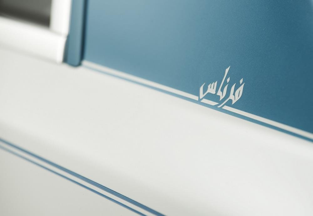 Un primer golpe de vista ya nos deja claro que estamos ante un coche dedicado a Oriente por la combinación de colores: el color blanco perlado presente en la parte inferior de la carrocería y color azul pálido que nos encontramos en los pilares y en el techo del coche. La línea que separa ambos tonalidades incluye un motivo que recuerda al ala fabricada por Firnás, así como una insripción en letras del alfabeto árabe. El resto de las novedades tenemos que encontrarlas en el interior.