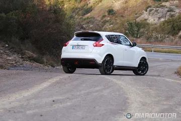 Por cotas el Nissan Juke Nismo crece en longitud en 30 mm, llegando a los 4.165 mm de largo. Su anchura es de 1.770 mm, 5 mm más, quedándose en 1.565 mm de alto y con una batalla de 2.530 mm, cifras que no cambian respecto a las variantes normales. Su peso es de 1.295 kg.