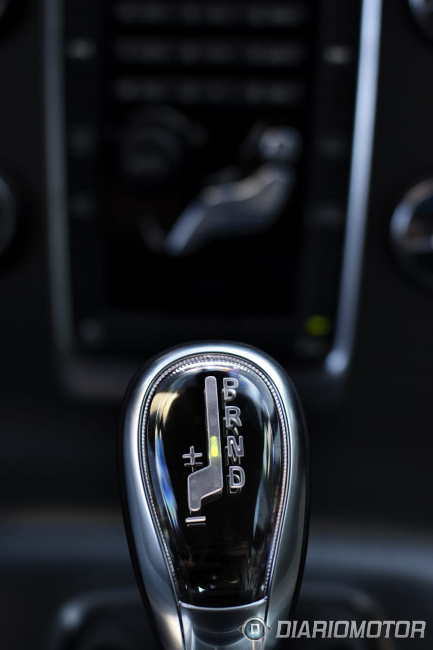 Salvo estos puntos en la instrumentación y en la pantalla sobre la consola central, cabe mencionar que no cabe duda de la gran calidad del interior del Volvo S60. El interior es impecable, algo que refuerzan detalles como el pomo de la palanca de cambio iluminada. Sobre la disposición de huecos portaobjetos el Volvo S60 cuenta con una nota bastante buena, espacio tras la consola para guardar el móvil o la cartera sin que quede a la vista. Hay espacio para botellas de 1 litro y en el puente central otro espacio más cubierto por una “cortinilla” plástica de buena calidad.