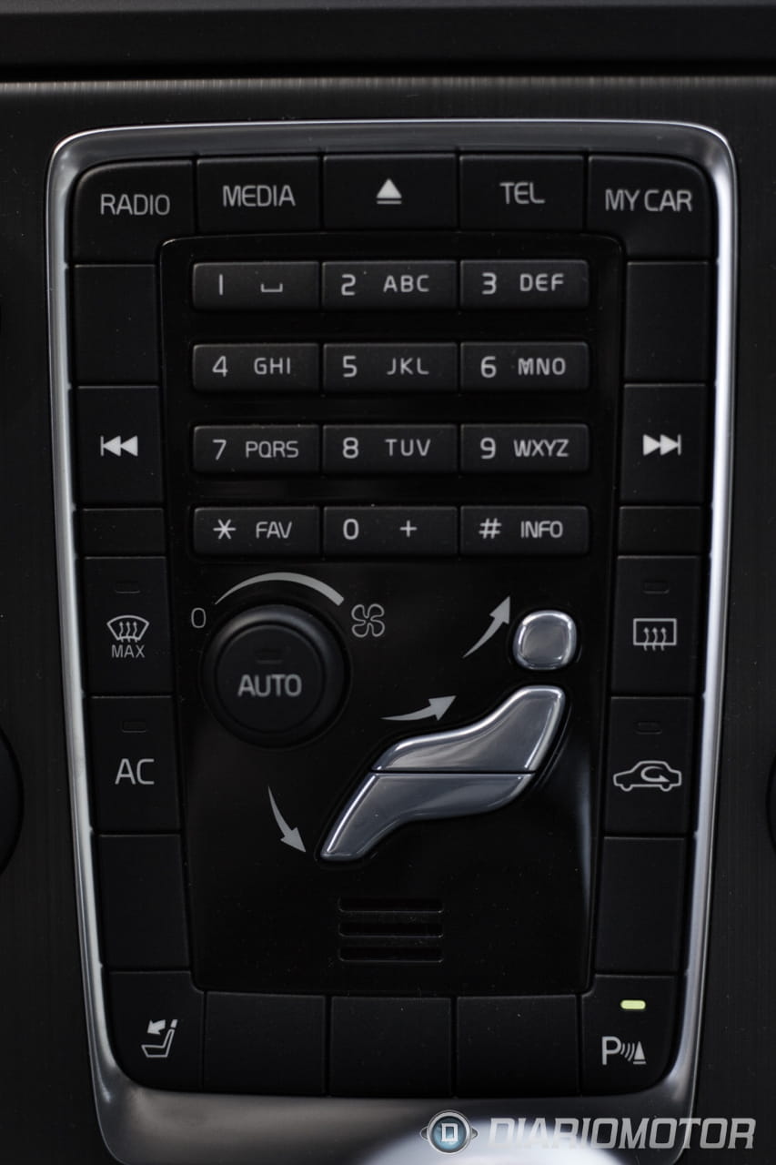 Una consola central con un elegante acabado, contorneada por un acabado cromado, a juego con otros detalles de los guarnecidos de las puertas, los mandos o las esferas del cuadro, en la que nos encontramos los mandos de la climatización en una disposición que de nuevo hace necesario recalcar esa sensación de diseño limpio. De diseño sueco.