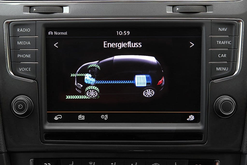 El e-Golf contará con tres modos de conducción diferentes. El modo normal entrega toda la potencia del motor y permite desarrollar una velocidad máxima de 135 km/h. El modo ECO limita la entrega de amperaje y la potencia máxima se reduce a 95 CV, con una velocidad máxima de 120 km/h. Por último, existe un modo RANGE aún más restrictivo que el ECO y que corta el funcionamiento de los elementos auxiliares (radio, climatización, etc…) para reducir al máximo el consumo de electricidad. Este modo parece ideado para aquellos a los que se le va el pie derecho e intentan a la desesperada llegar a su destino sin quedarse sin pilas, literalmente.