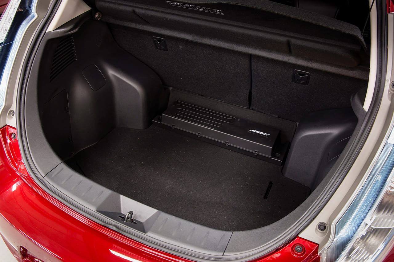El Nissan Leaf ha modificado el lugar en el que se almacena el cargador, del maletero al capó delantero. De esta forma el espacio de carga ha crecido 40 litros (hasta un total de 370 litros), que no son muchos, pero lo suficiente como para cargar una maleta de mano de avión adicional.