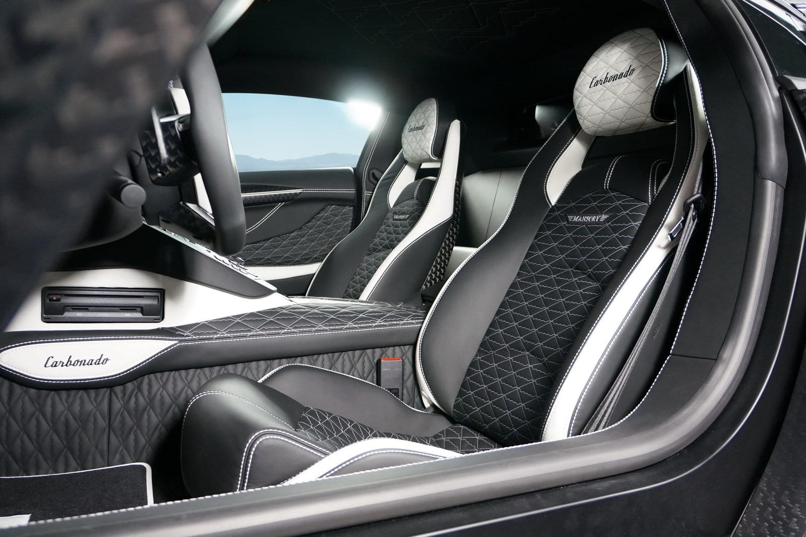 Por eso se llama Carbonado, porque nos encontramos este caro material hasta en la sopa. Dejando a un lado que nos pueda gustar más o menos, la carrocería parece esconder un avión de espionaje, caro, agresivo e inadvertido por el radar enemigo. En el interior nos encontramos un cuero con patrón de diamante, combinado en colores blanco y negro, además de más fibra de carbono. Al parecer, Mansory sólamente va a producir 6 unidades del Carbonado, a un precio desconocido, pero que superará las seis cifras sin duda alguna.