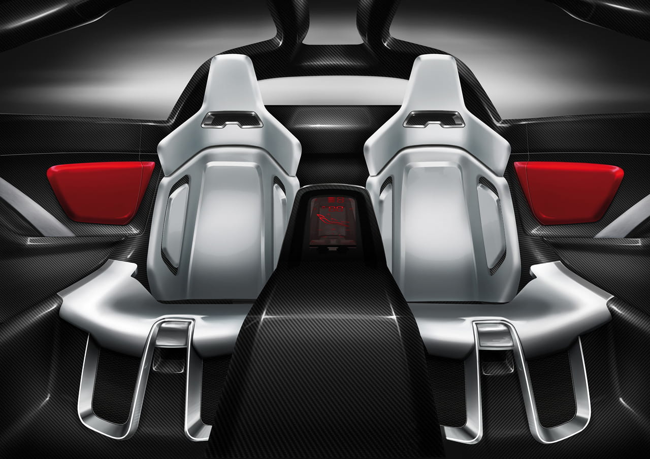Con una longitud de 4.530 mm, un ancho de 2.070 mm y una altura de 1.335 mm, el Giugiaro Parcour declara 1.550 kg, cifra que no le impide llegar hasta los 100 km/h en sólo 3.6 segundos gracias al par de 540 Nm a 6.500 rpm y la tracción total con la que cuenta, recurriendo a una transmisión secuencia de doble embrague de 7 relaciones. Su velocidad máxima no está tampoco nada mal, llegando hasta los 320 km/h. Además, el Giugiaro Parcour recurre a una evolucionada suspensión, denominada Pushrod 2.0, que permite un comportamiento deportivo en carretera y un ajuste con una mayor absorción cuando se circula por una superficie más comprometida.
