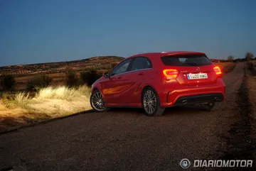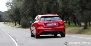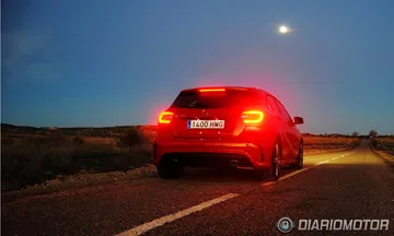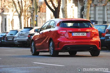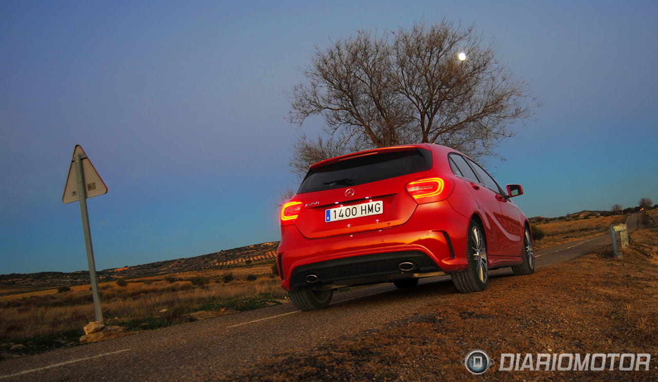 Y llegamos a la trasera del nuevo Mercedes Clase A, la que aparentemente se muestra como el punto más polémico. Pero es normal, no estamos acostumbrados a ver la zaga de un compacto en Mercedes. Después de haber pasado una semana con él me parece igual de acertada la zaga que el resto del conjunto estético. Branquias laterales (cerradas eso sí) fruto del paquete AMG, una acertada doble salida de escape y una luna posterior estrecha, coronada por un alerón, que refuerza la imagen de coche bajo y ancho, sobre todo gracias a las inclinaciones laterales llevadas más allá del pilar posterior, algo en lo que difiere bastante del Audi A3 y del BMW Serie 1.