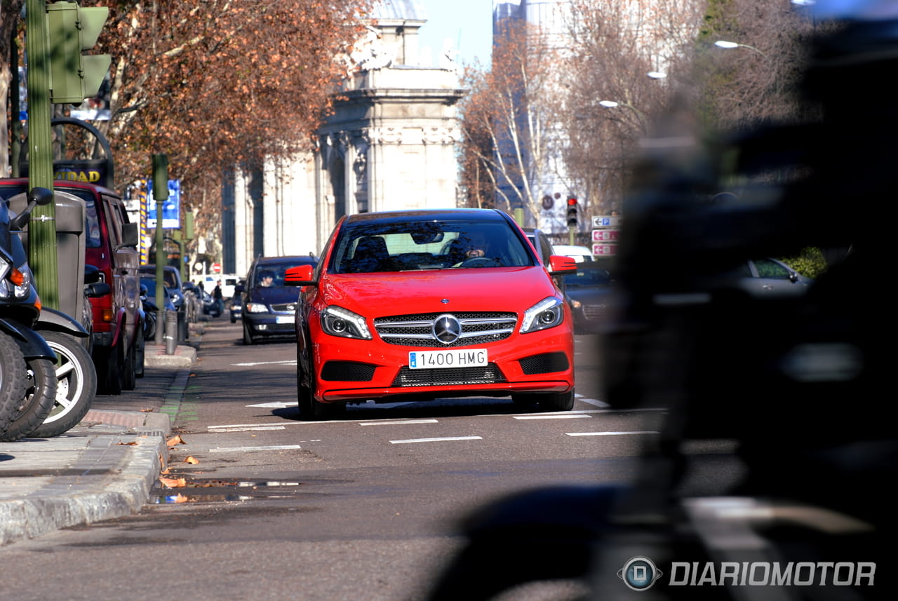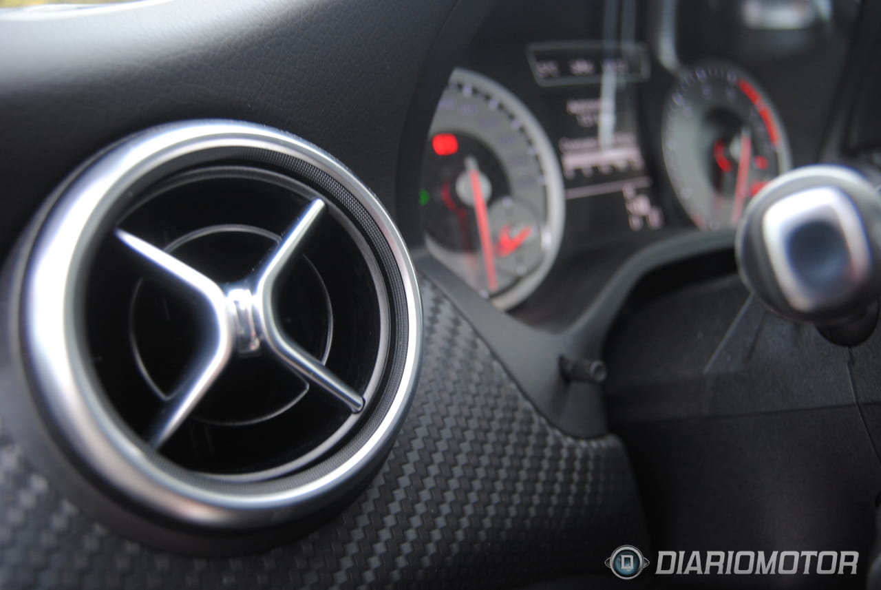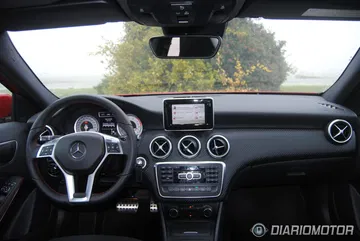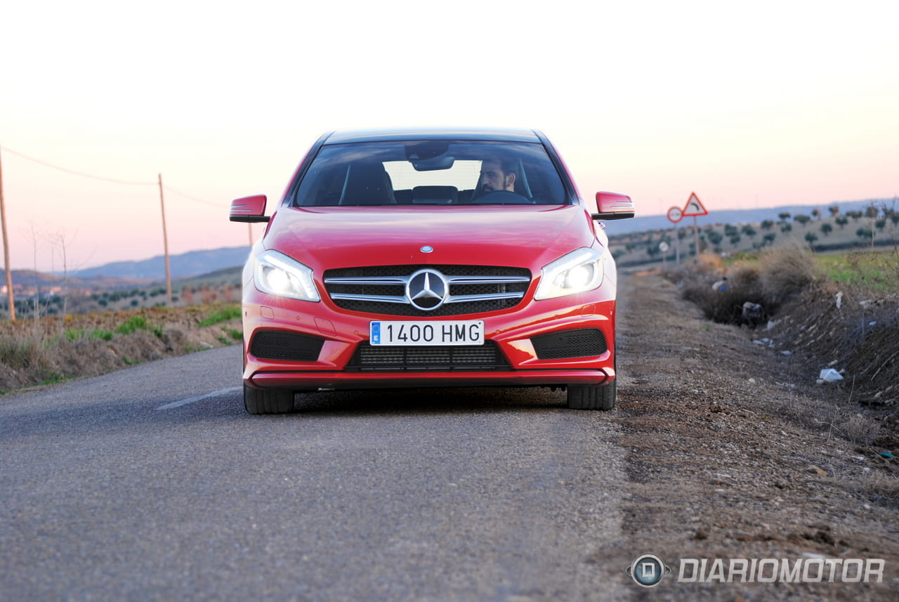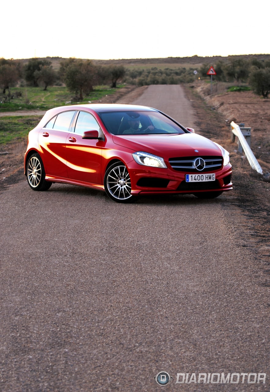Me gusta el diseño del Mercedes Clase A. Me gusta, lo decía al comienzo del segundo párrafo de este apartado, lo vuelvo a decir ahora antes de meternos en su interior y lo volveré a decir a lo largo de la prueba. Me gusta tal y como está esta unidad. En rojo, un tono que le sienta a la perfección por la línea, resaltando los nervios y por el carácter, más deportivo, más juvenil. Con el paquete AMG, con esos paragolpes, con las taloneras y sobre todo con esas llantas multiradio. Me gusta en definitiva el aspecto del Mercedes Clase A. Me gusta más que el Audi A3 o que el BMW Serie 1, por supuesto, es una cuestión personal y los otros dos alemanes sobresalen por encima del Mercedes en determinados aspectos. Pero a mí, me ha ganado el Clase A con su diseño, ¿y qué pasa con su interior?