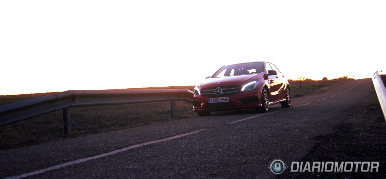 Es el momento de ponernos en marcha con la segunda parte de la prueba del Mercedes Clase A, de analizar su propulsor, su dinámica, sus consumos… De momento el Mercedes Clase A me ha convencido. Me gusta su diseño exterior. Más aún con el color rojo de esta unidad y el paquete AMG, con esas llantas. Esas llantas. Me gusta el diseño de su interior. Quizá preferiría un acabado diferente para el salpicadero, pero en cuanto a diseño se refiere, el contraste entre el símil de aluminio y el símil de la fibra de carbono me gusta, me gustan esos aireadores, me gusta el volante… ¿y qué decir de los asientos y del toque de la Alcantara?