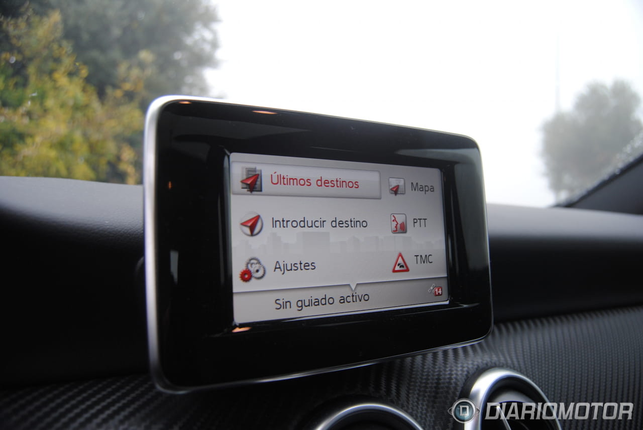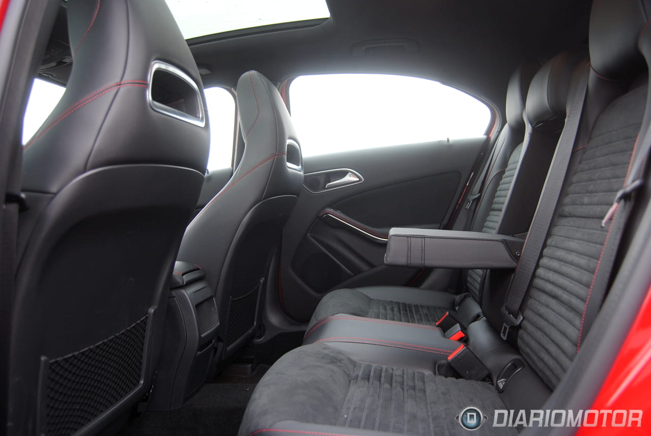 Nada más abrir la puerta una buena sensación ¿los culpables de ello? Sus asientos. Unos asientos de diseño deportivo, en una sola pieza, con un muy buen aspecto. Negro, costuras rojas a juego con el exterior. Un diseño laminado para el centro, la siempre perfecta mezcla de la Alcantara y el cuero… y lo mejor de todo: son cómodos y agarran bien. Un 10 para los asientos del Mercedes Clase A. La única “pega” es que su ajuste es manual… y entrecomillo pega porque no lo considero del todo como tal.