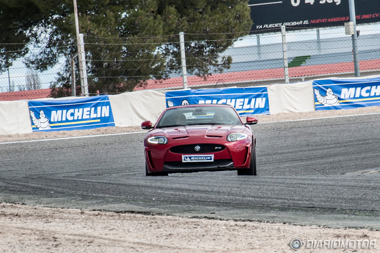 El barcelonés Mia Bardolet (1993) destacó la importancia de la elección de un buen compuesto. En nuestra vuelta rápida copilotados por Enrique García Ojeda (2008), me contaba que incluso con un neumático de calle como el Pilot Sport que calzaba el Jaguar XF con el que rodamos por el Jarama, la exigencia a un ritmo tan alto como el impuesto en un circuito sigue presente. Ojeda apuntaba, ya no solo al agarre de la banda de rodadura, sino también a la resistencia de la carcasa. “Un neumático que muestra aplomo, incluso deslizando al límite (todos los neumáticos deslizan antes o después y por supuesto tienen un límite), aporta seguridad”.