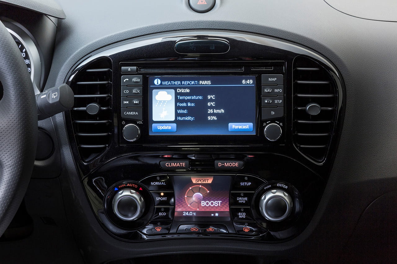 El sistema Nissan Connect estrena además sincronización con los servicios de Google Send-To-Car, con suscripción contratada y cuotas cubiertas durante los tres primeros años. El sistema está dotado de una pantalla táctil a color de 5,8 pulgadas, navegación por satélite, conectividad Bluetooth para teléfonos móviles y equipos de sonido, análisis de conducción eficiente y modos de conducción Dynamic Control System.