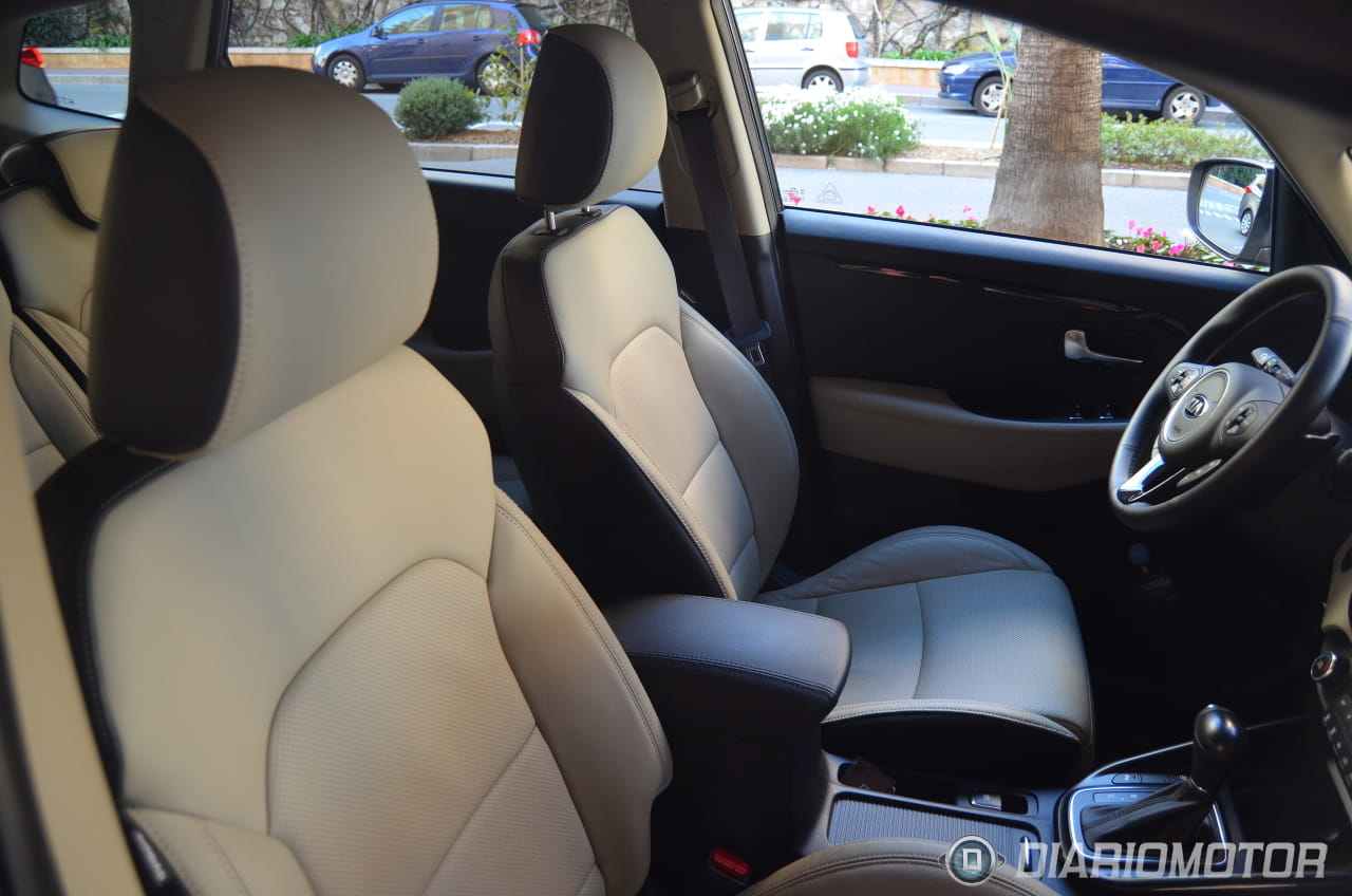 Dejemos el pasado y volvamos al interior del Kia Carens. Ajuste eléctrico en estos asientos con tapicería en símil piel, un acabado también en símil piel para el salpicadero, para los guarnecidos de las puertas… muy buen aspecto, aunque preferiblemente en negro, en el acabado más claro que lucía otra de las unidades durante la presentación presentaba un desgaste bastante prematuro, por lo que, siendo además un vehículo con enfoque familiar, mi voto, va para la tapicería oscura.