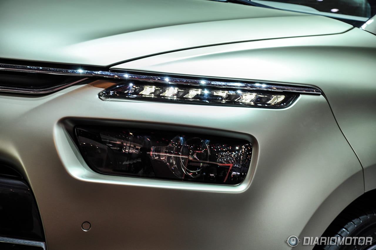 Las líneas curvas y su silueta en forma de “huevo” sigue presente, marca de la casa, también un intento por camuflar los pilares de la línea lateral y perfilarlos por unos cromados que nos recuerdan mucho a los esfuerzos estéticos realizados en la línea DS. Pero el detalle más característico del nuevo Picasso será, sin lugar a dudas, la presencia de faros divididos en dos piezas en el frontal fusionándose con una gran parrilla inferior y unos coquetos cromados en el marco del capó para flanquear los chevrones.