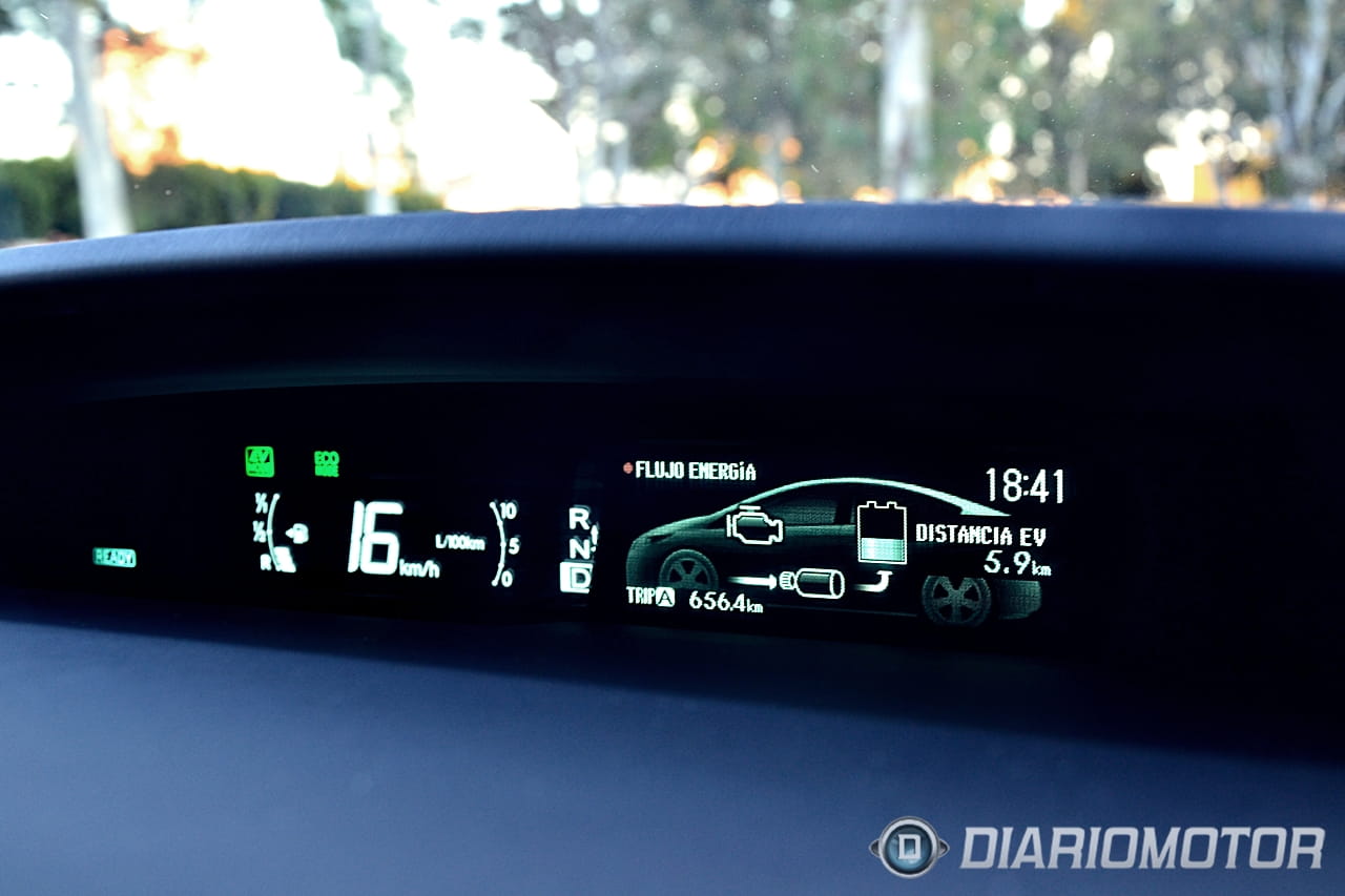 El ordenador de a bordo del Toyota Prius Plug-In Hybrid es un buen compañero de viaje de cara estar al tanto del flujo de energía e informaciones relacionadas. No cuenta con ninguna diferencia respecto al Toyota Prius convencional y ciertamente presenta un funcionamiento al que hay que acostumbrarse para aprovecharlo al máximo. La inclusión del proyector HUD en el equipamiento de serie en este acabado Advance, el más básico de la variante Plug-In, ofrece además un extra de comodidad y efectividad a la hora de conocer la información más relevante con la proyección en el parabrisas de la velocidad y la barra de flujo constante de energía.