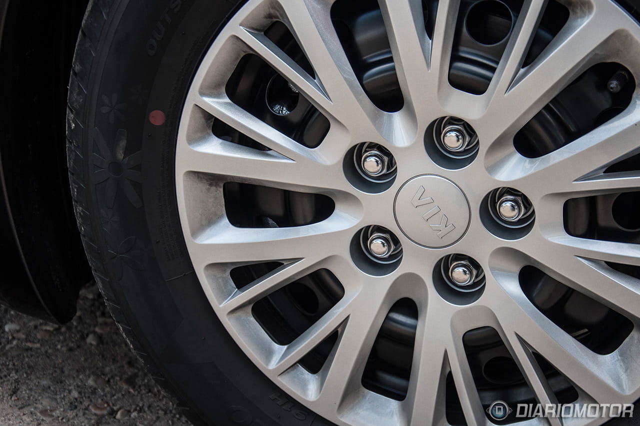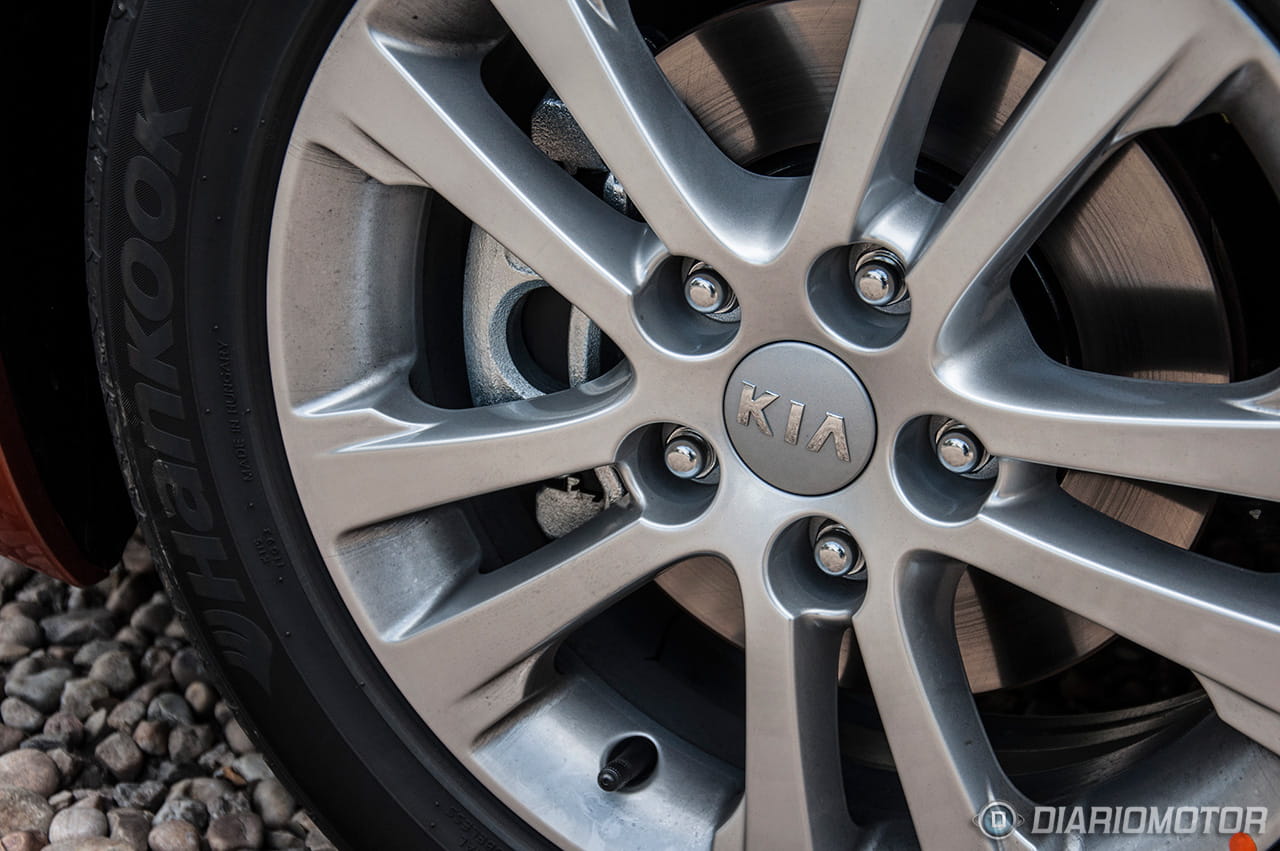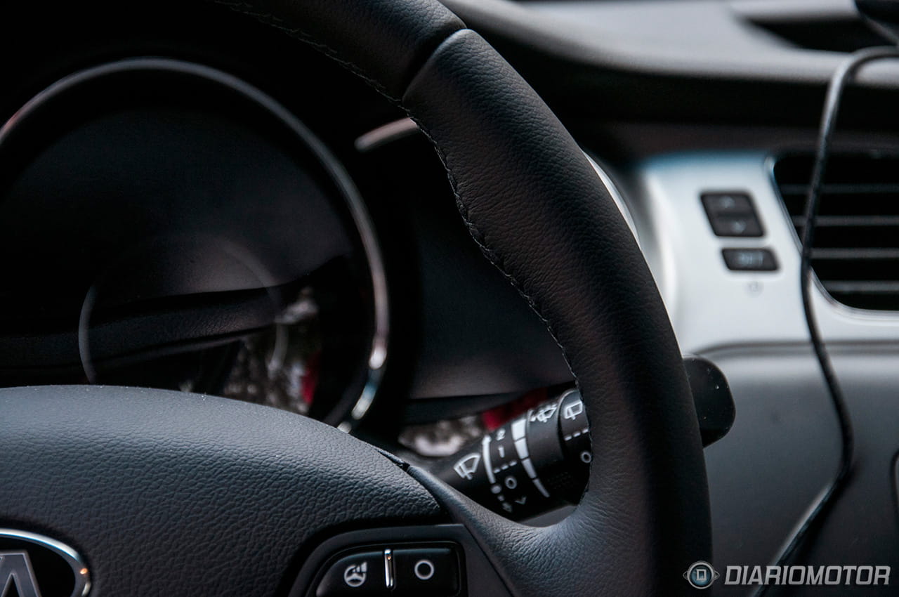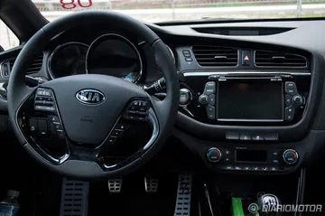 Aunque el tapacubos [foto] del modelo de la entrada de la gama Kia pro_cee’d sea realmente bonito, no deja de ser un detalle pobre que no podremos subsanar ni tan siquiera con unas llantas como extra opcional. El acabado Concept solo está disponible con los motores más básicos, el 1.4 CVVT de 100 CV (que solo puede optar a este acabado) y el 1.6 CRDi de 110 CV que con acabado Drive cuesta aproximadamente 1.500 euros más. Los materiales empleados, desde este modelo más básico, son muy aceptables, y el habitáculo, aunque sencillo, está bien rematado. Cuenta con unos asientos de tela bastante sencillos y ni el volante [foto] ni el pomo del cambio están revestidos con piel. Lo bueno es que desde el Concept, salvo por los sensores de presión de neumáticos y la ayuda de mantenimiento de carril, ya contamos con toda la dotación de seguridad existente.