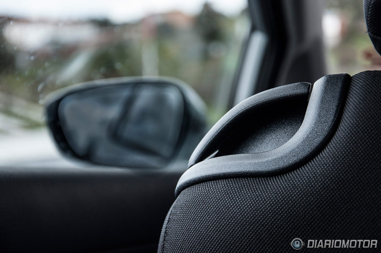 Con el diseño de este compacto de tres puertas, la llanta de 16″ [foto] se agradece, sinceramente. En el habitáculo ya nos encontramos con detalles más agradables, como el revestimiento de piel de la palanca de cambios y el volante, que es multifunción y cuenta con suficientes botones para controlar todas las opciones disponibles en el equipo de sonido y el ordenador de a bordo.
