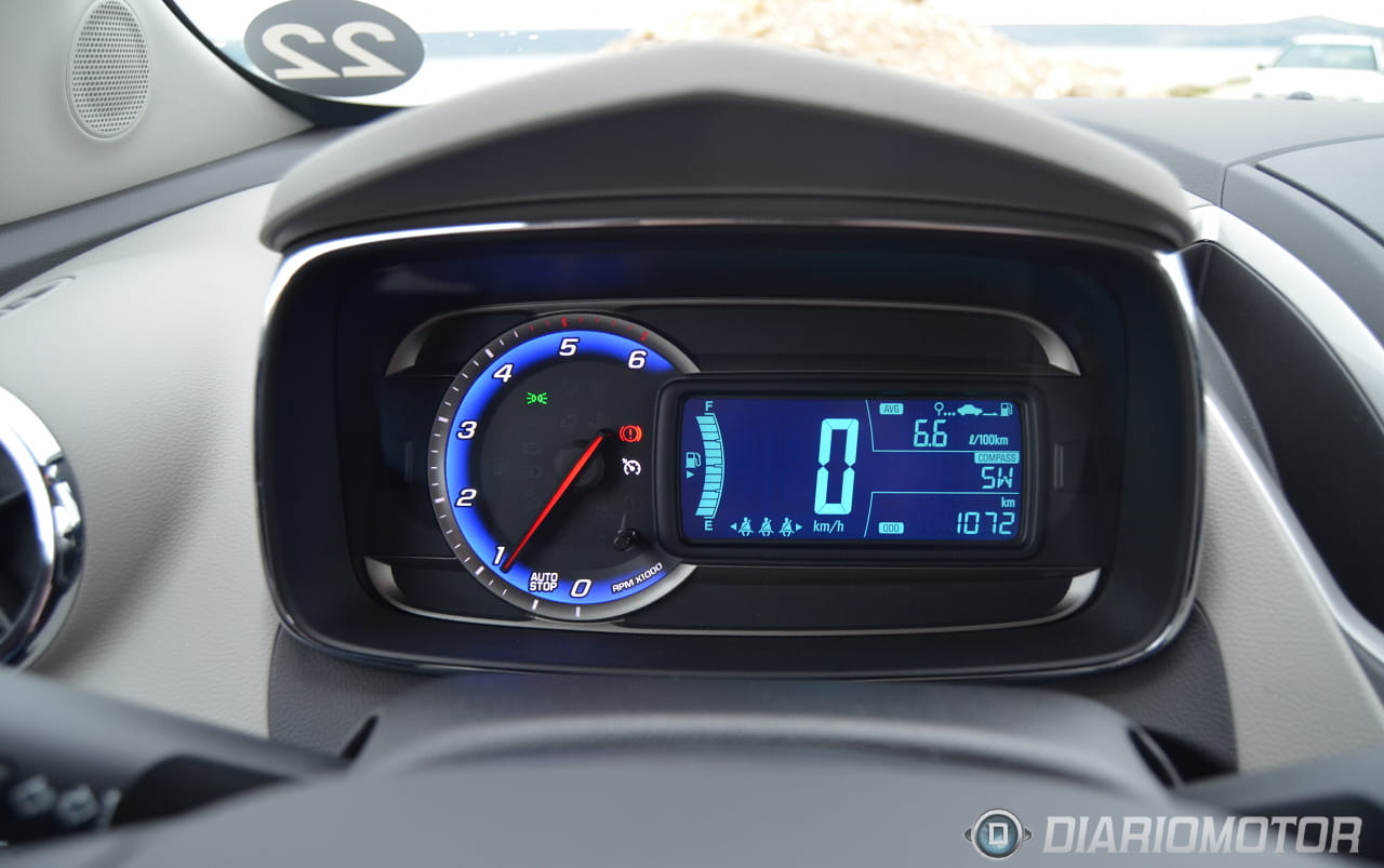 Mención a parte merece la instrumentación, una instrumentación en la que la combinación analógica y digital nos hace pensar inmediatamente en los paneles que estamos acostumbrados a ver en las motos. Una esfera clásica para las revoluciones, mientras que en el lado digital aparece la velocidad, el nivel de combustible, el consumo, el trip y, curiosamente, nuestra orientación (norte, sur, este y oeste).