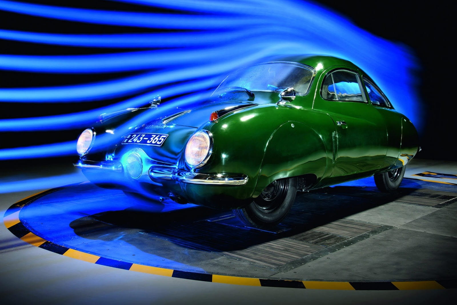 La aerodinámica moderna ha llegado a extremos impresionantes. No sólo se trata de obtener un coeficiente aerodinámico bajo, se trata de conseguirlo cumpliendo las normativas de protección al peatón en caso de atropello. Hoy por hoy el coche de serie más aerodinámico a la venta es el Mercedes CLA, con un impresionante cX de sólamente 0,22. A finales de los años 40 del pasado siglo, el señor Kurt Volkhart – ingeniero de Volkswagen – estuvo experimentando con la aerodinámica sobre la base de un Escarabajo… logrando resultados sorprendentes.