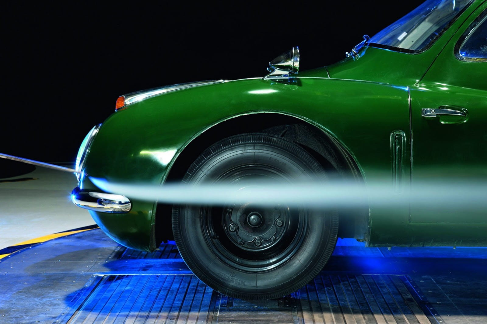 Por suerte, ha podido ser recuperado a su estado original, y sigue siendo funcional. Para demostrar la importancia de la aerodinámico y un peso contenido, no hay mejor ejemplo que el V2 Sagitta: con su pequeño motor bóxer de 1.1 litros y 24 CV es capaz de alcanzar los 140 km/h. Para poner el dato en perspectiva, una moto de 125 cc con unos 15 CV de potencia sufre para pasar de 110 km/h. Tras rescatar al V2 Sagitta, Volkswagen lo llevo a su túnel de viento en Wolfsburgo para realizar algunas pruebas, con interesantes resultados.