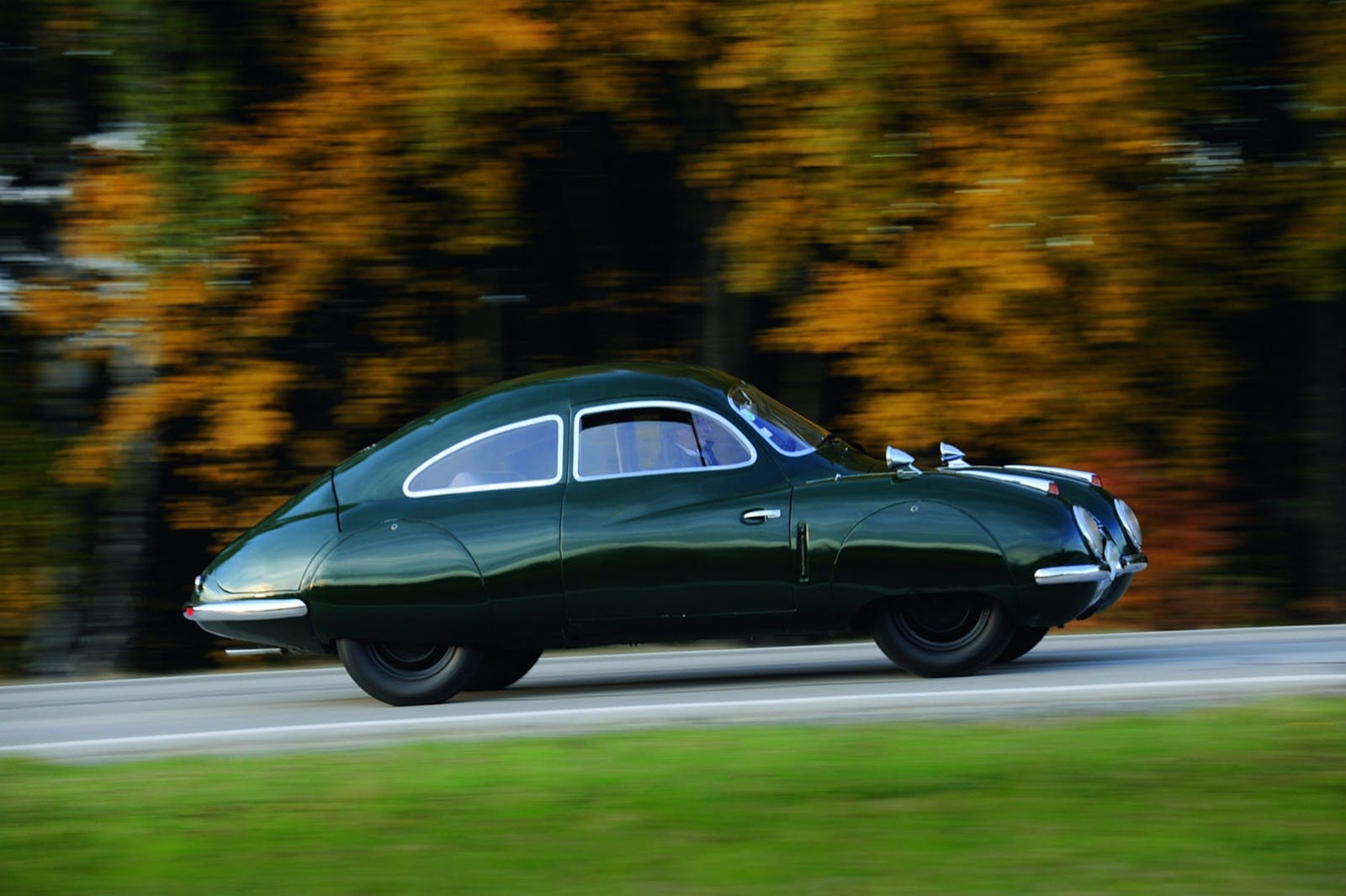 Así nacía el Volkswagen V2 Sagitta, del que sólamente una unidad fue fabricada a mano en el año 1947. Siguiendo los estudios aerodinámicos del Baron von König-Fachsenfeld, un Volkswagen Escarabajo de serie fue agraciado con una carrocería de aluminio. Era una carrocería funcional, con tres preciosas ópticas y pasos de rueda carenados. Me resulta impresionante lo similar que resulta a los primeros prototipos del Porsche 356, también con carrocería de aluminio. El prototipo estuvo desaparecido durante décadas, pero apareció hace apenas unos meses en Austria.
