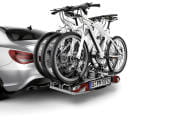 Para los aficionados a las dos ruedas sin motor Mercedes dispone de un porta-bicicletas que se asegura en la zaga del Mercedes CLA. Permite enganchar hasta dos bicicletas de distintos tamaños, incluidas lógicamente las diseñadas específicamente por el fabricante alemán.