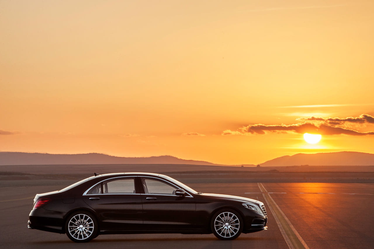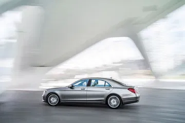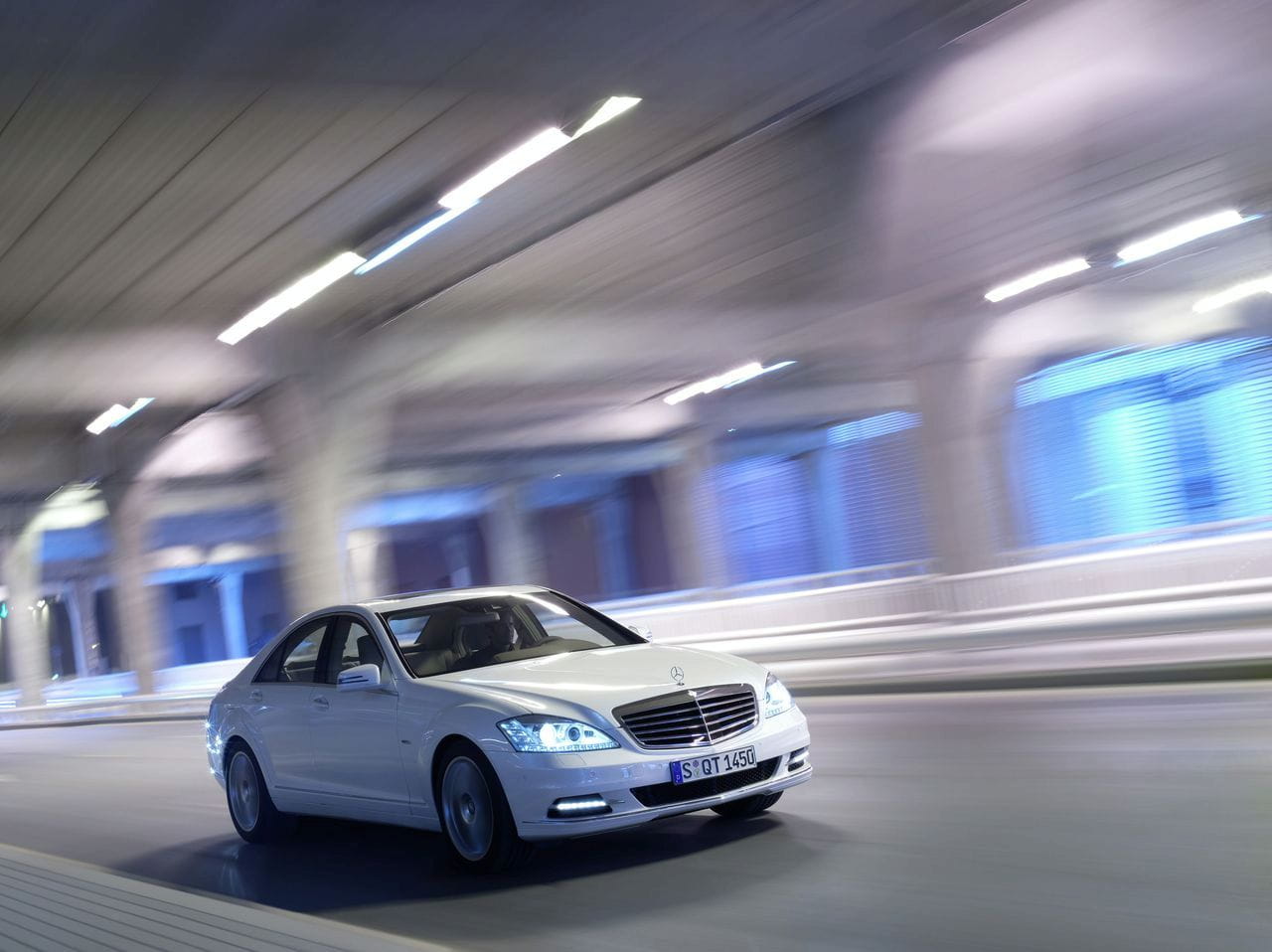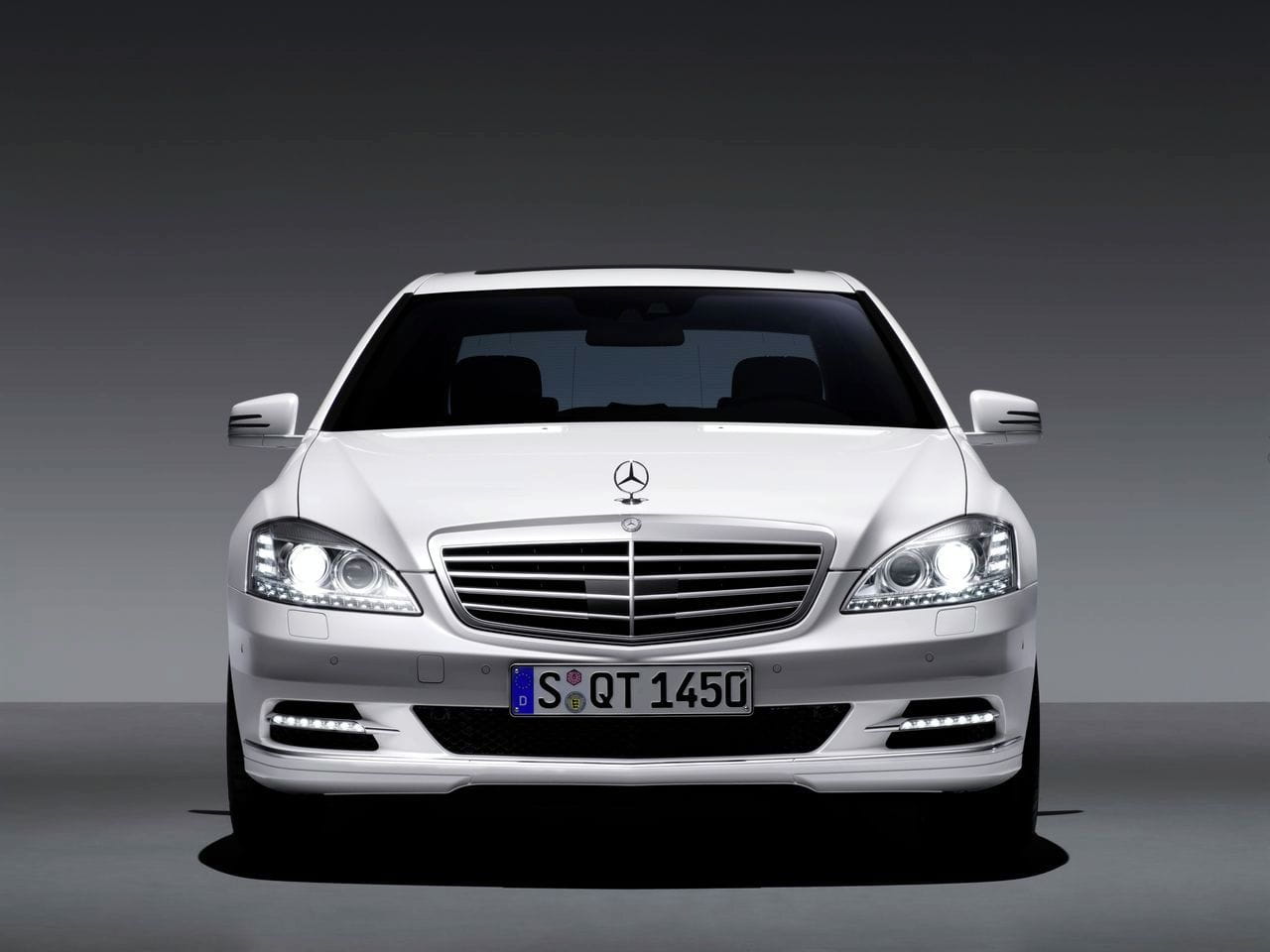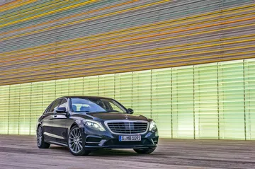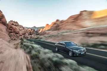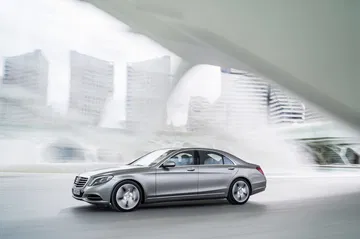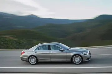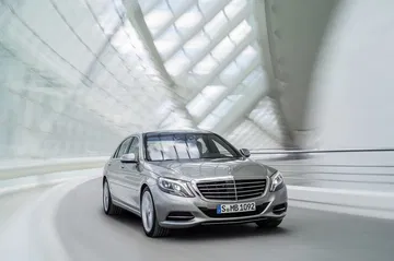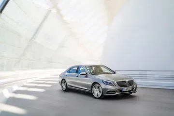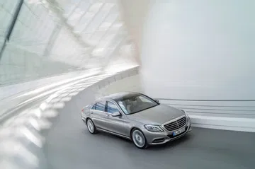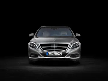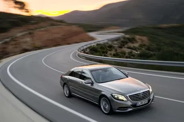Vista delantera y lateral del Mercedes Clase S en carretera