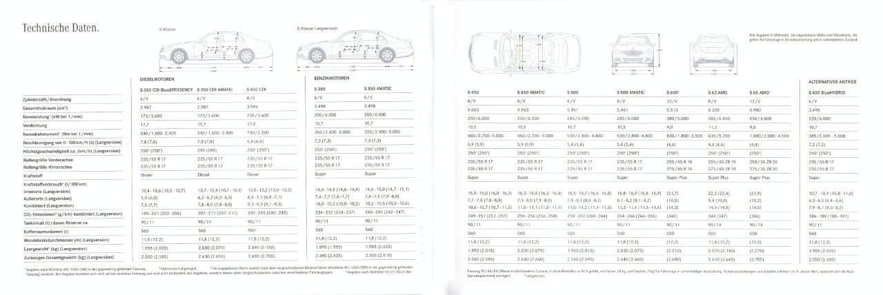 Como techo de la actual gama el Mercedes S 500 como alternativa gasolina sin hibridar, contando con un V8 de 4.6 litros capaz de entregar 455 caballos a 5.250 rpm, con un par de 700 Nm entre las 1.800 y las 3.500 rpm, un 0 a 100 km/h en 4.8 segundos, un consumo de 8.6 l/100 km y una velocidad máxima de 250 km/h.