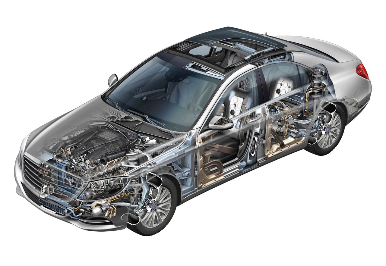 El trabajo puesto en el coeficiente aerodinámico no se queda atrás si lo comparamos con el trabajo en la reducción de peso. El aluminio se convierte en el principal actor de su exterior y si tomamos como referencia al Mercedes S 350 BlueTEC, nos encontramos con un peso de 1.900 kg.