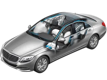 El nuevo Mercedes Clase S incorpora cinturones de seguridad con airbag en las plazas traseras. Con los asientos reclinables, también se añade un airbag para evitar que el ocupante se deslice por debajo del cinturón de seguridad. Si hablamos de seguridad preventiva, además de la citada cámara de visión nocturna o el control de crucero adaptativo, cuenta con un sistema de control de peatones y de mantenimiento en el carril.