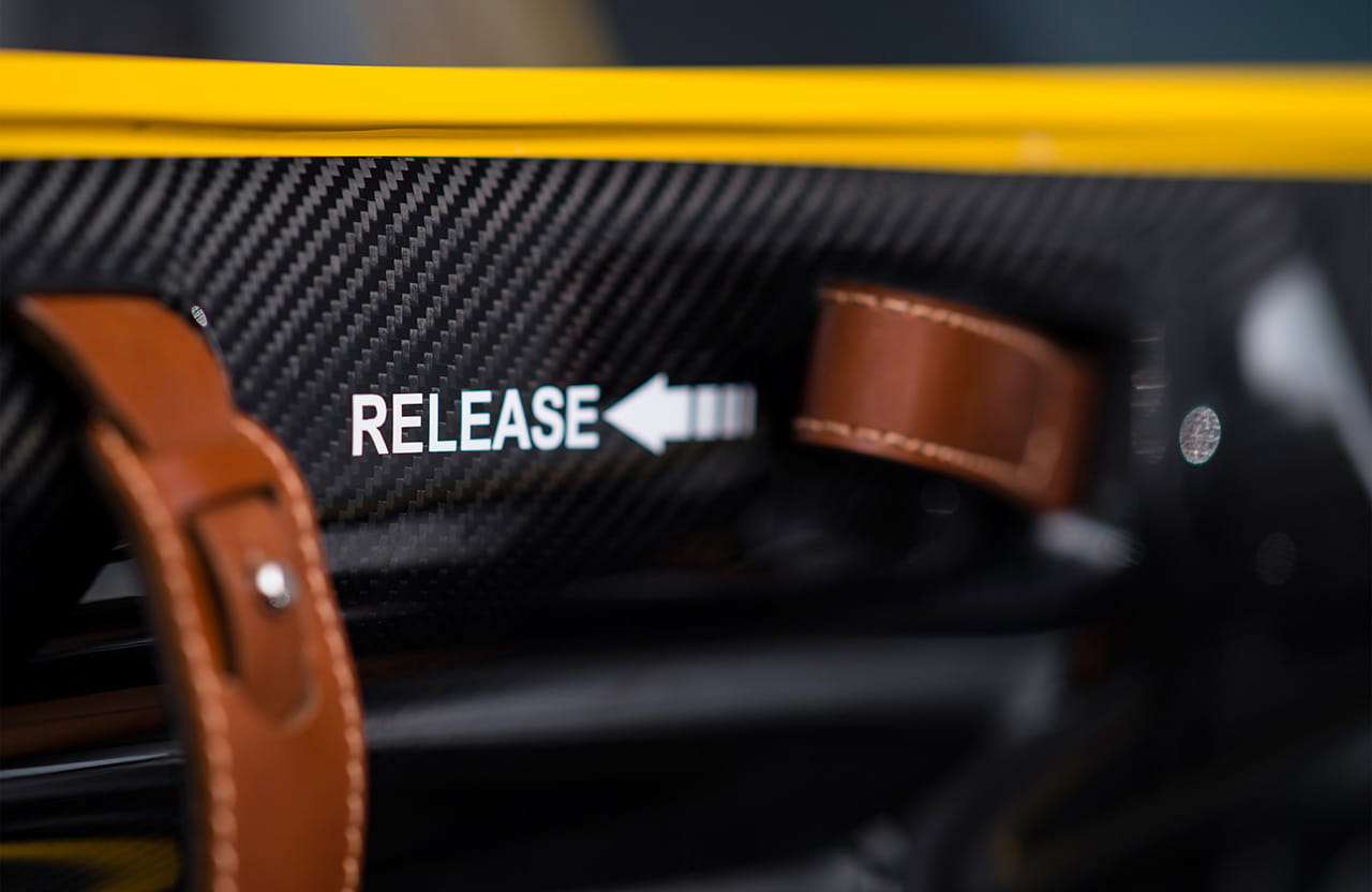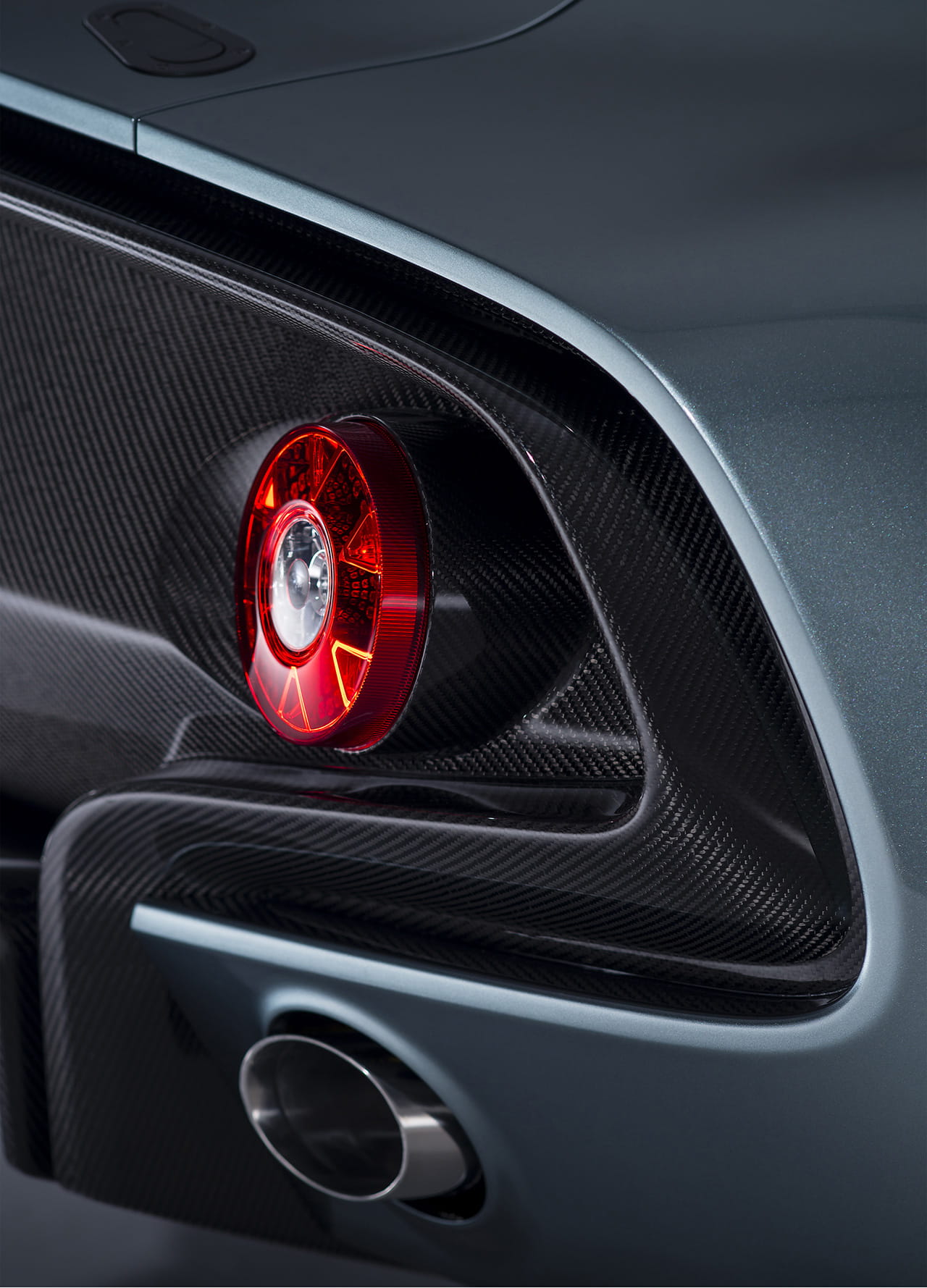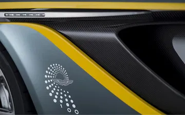 Salta a la vista que ante nosotros tenemos una “flecha verde” sin techo ni parabrisas y con un habitáculo dividido en dos compartimentos y pensado única y exclusivamente para rodar en circuito. Mención aparte a sus puertas de tijera o su bello acabado de carrocería verde con el dorsal 100, uno por cada año de historia de Aston Martin y los detalles en amarillo.