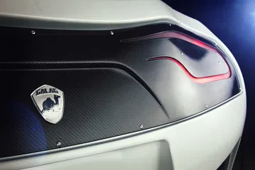 Si nos fijamos en el pilar posterior de este Team Galag TG1 probablemente podamos intuir que lo que se esconde debajo de este deportivo tan peculiar, es realmente un Nissan GT-R. No obstante difícilmente nos encontraremos algún panel intacto y de serie del deportivo original de Nissan. La carrocería ha sido diseñada y construida de nuevo en fibra de carbono, por los preparadores americanos de Parker Brother Concepts y se ha dispuesto de unas llantas especiales de 21” de ADV1 Wheels.