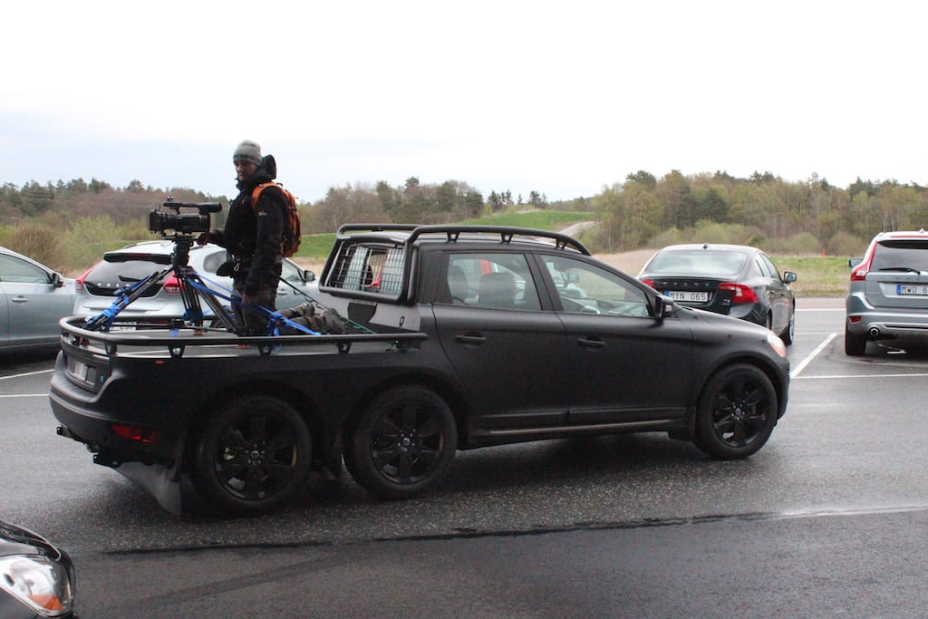 Efectivamente, este peculiar vehículo es el coche cámara que la firma sueca utiliza para sus necesidades de medios audiovisuales. Todos hemos visto en alguna ocasión los aparatosos montajes que hay que realizar sobre un coche de apoyo para lograr buenos encuadres, aunque también se ven de vez en cuando modificaciones como esta que utiliza Volvo. Han tomado la plataforma del XC60, han añadido un eje nuevo y han recortado toda la zona posterior de la carrocería para dejar un piso plano de carga, perfecto para montar una cámara.