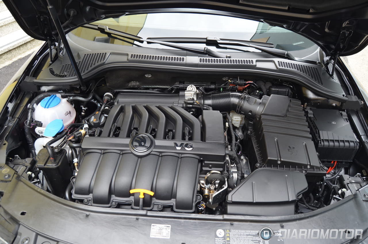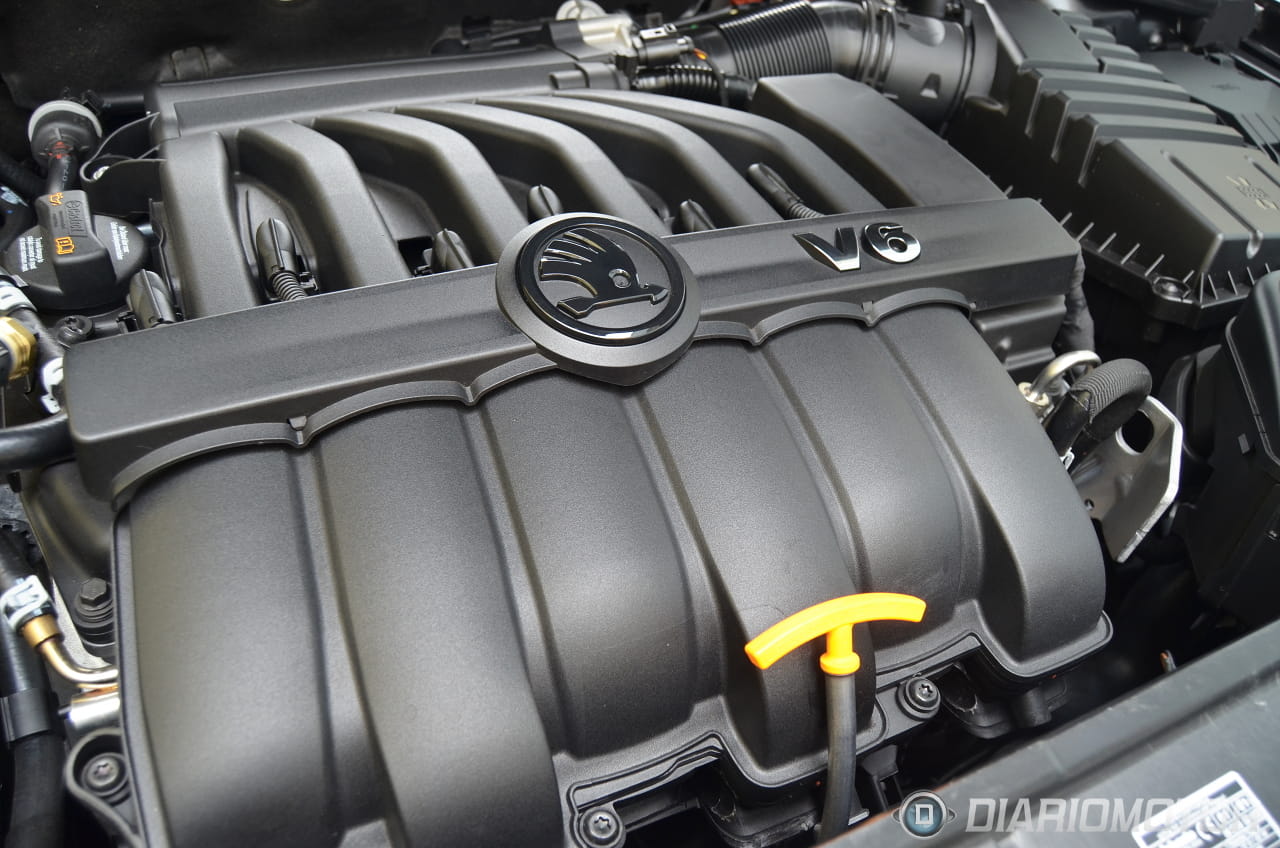 Con una estética que no varía nada respecto al de cualquier otra mecánica con el mismo acabado, salvo el mencionado detalles de los escapes, el Skoda Superb VR6 guarda todo su encanto bajo el capó en forma de bloque V6 de 3.6 litros, inyección directa y atmosférico, bloque, del que se sacan 260 caballos a 6.000 rpm, del que se consigue exprimir un par de 350 Nm entre las 2.500 y las 5.000 rpm. Los 260 caballos del bloque de 6 cilindros se entregan a las 4 ruedas, Haldex mediante, contando además con una transmisión DSG de 6 velocidades.