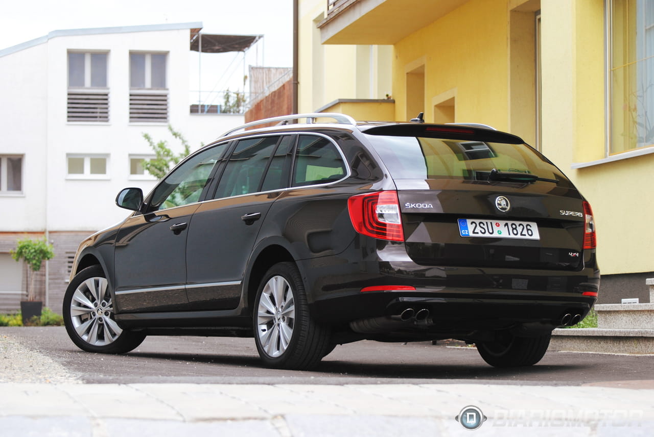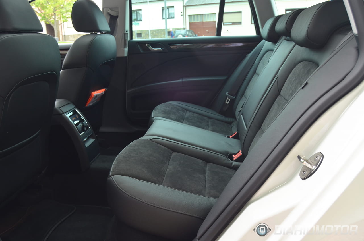 Una Superb Combi en un tono chocolate ante nosotros. Sin duda, podemos adjudicarle ya el adjetivo de discreto. Parece que no cambia absolutamente nada respecto a otras alternativas menos potentes. Hasta que te vas a la zaga… y allí están las 4 salidas de escape en una disposición de 2+2, flanqueando los laterales del paragolpes, cromadas, sutiles, sencillas… definiendo a la perfección este coche.