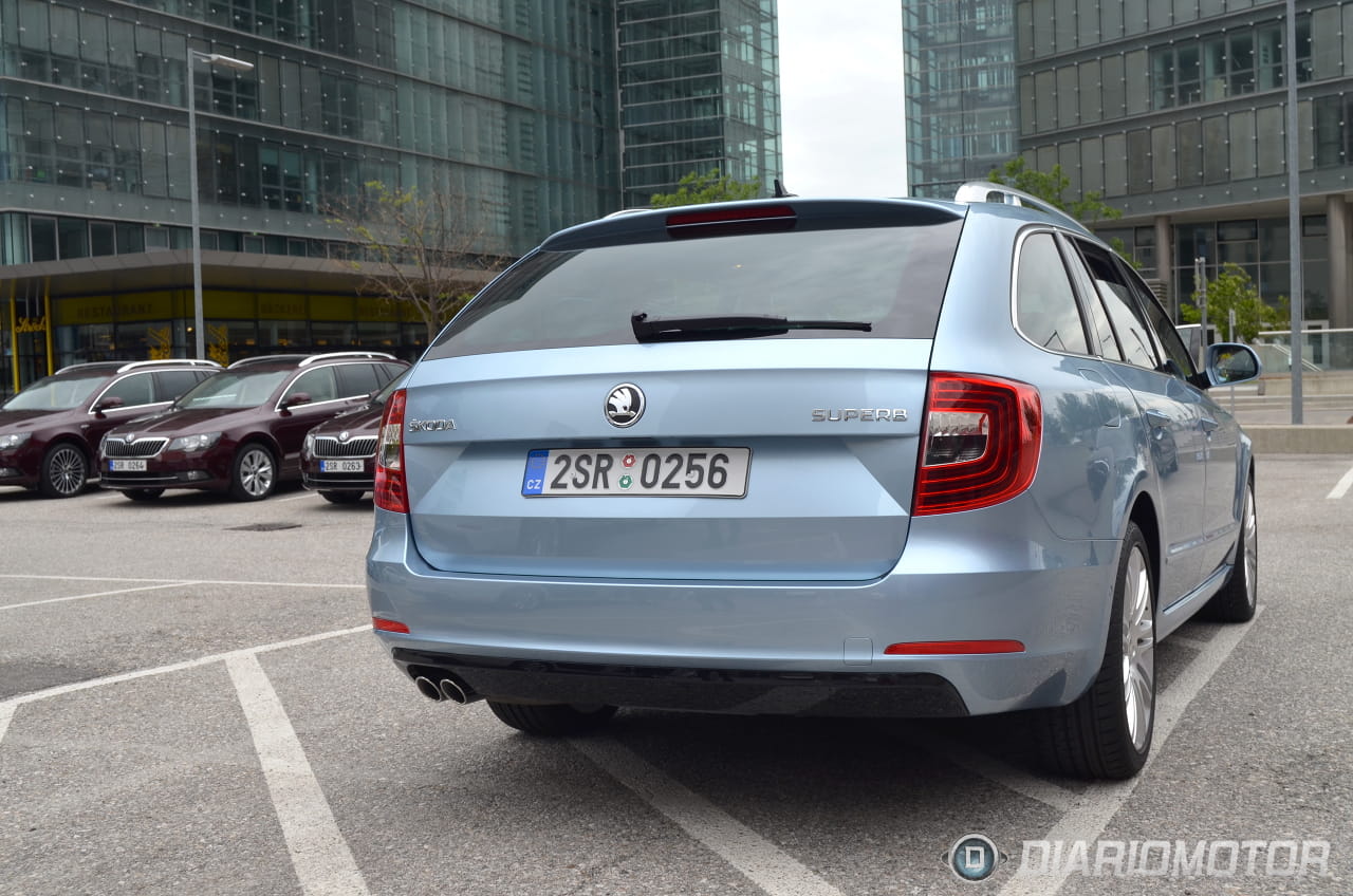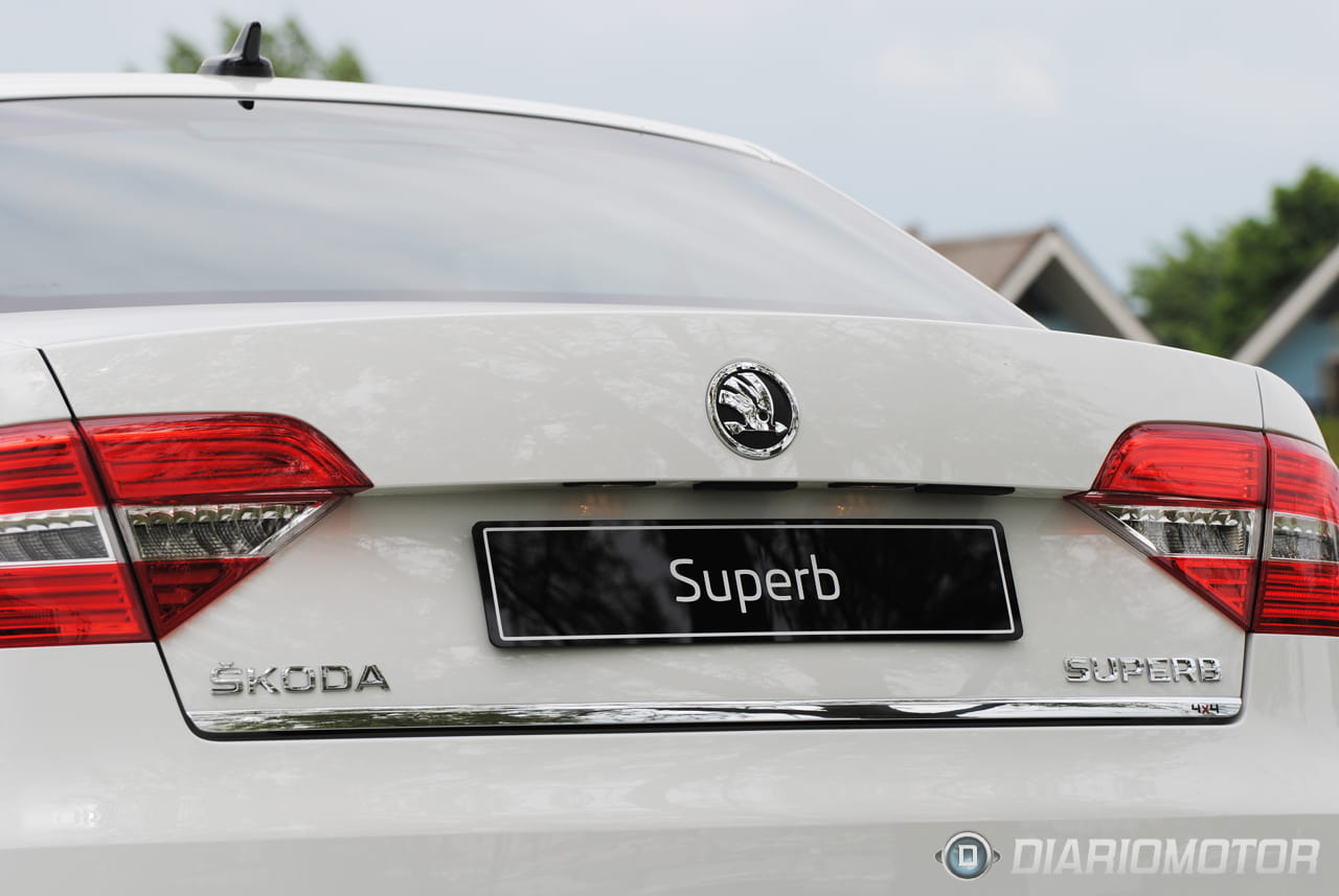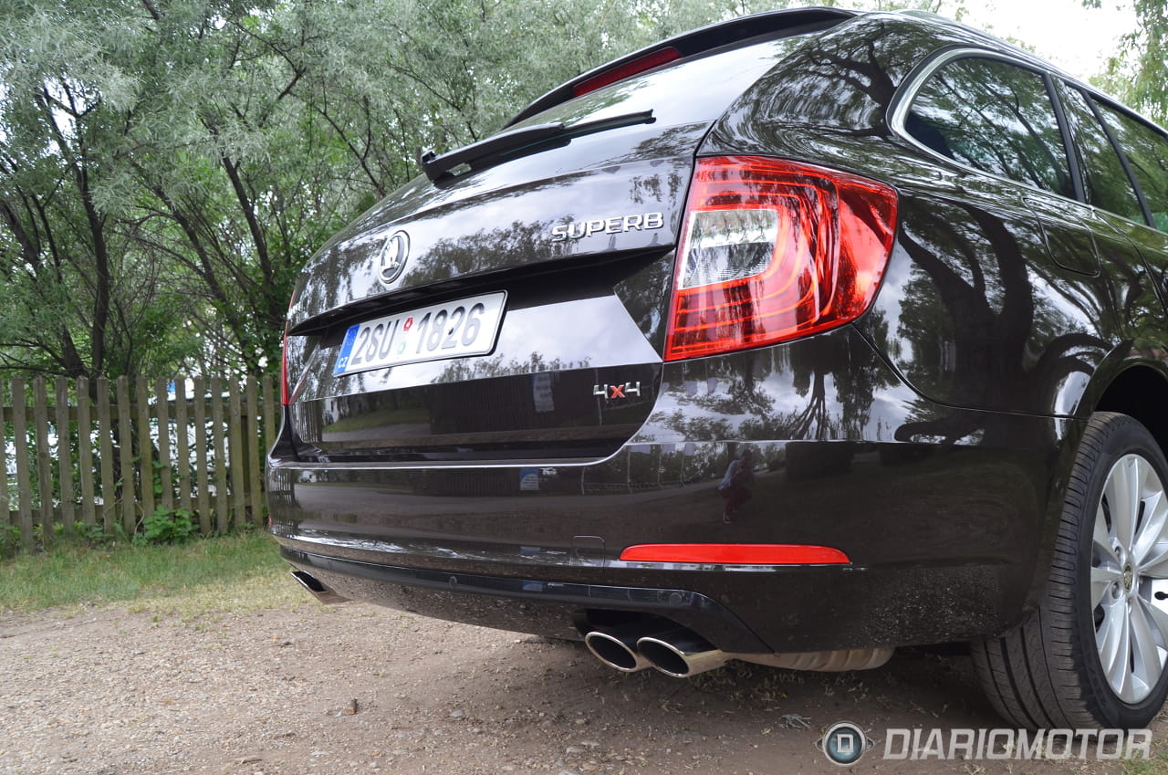 Junto a las 4 salidas de escape también nos encontramos una insignia de “4X4” con la equis en rojo. Más allá de esto nos encontramos exactamente con el mismo diseño que luce cualquier otra alternativa mecánica. Un repaso rápido a los cambios que ya detallamos en la toma de contacto con el Superb 2013: una nueva parrilla, luces diurnas, un nuevo aspecto para las ópticas, nuevas llantas, nuevos tonos de pintura y opciones de equipamiento, además de añadir Start&Stop y sistemas de recuperación de energía a las mecánicas de la gama.