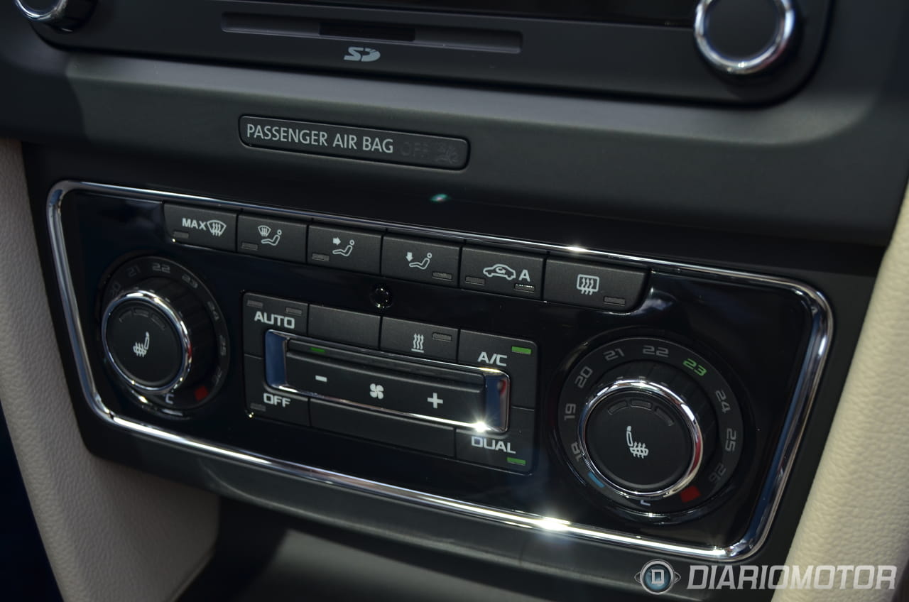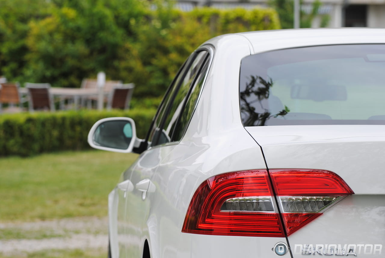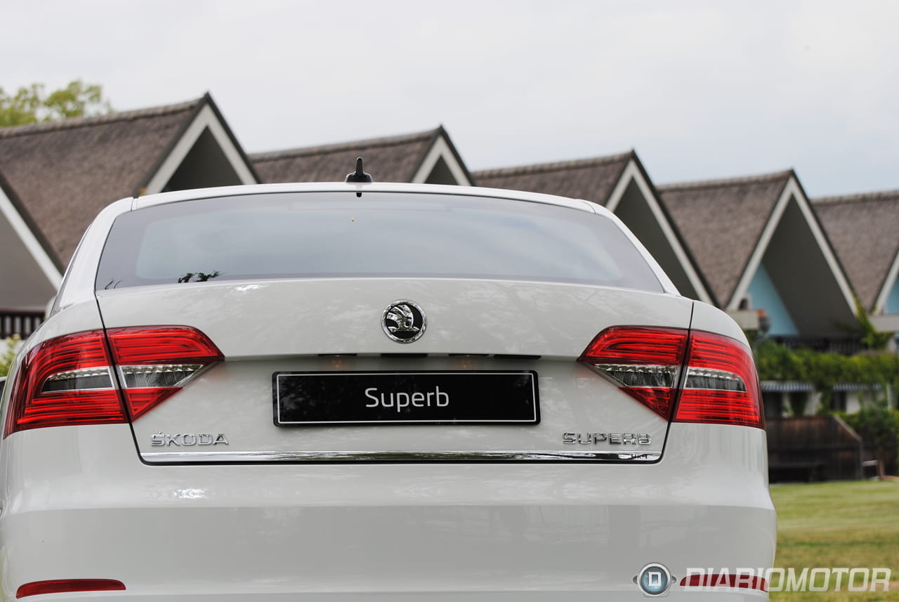 Junto a las 4 salidas de escape también nos encontramos una insignia de “4X4” con la equis en rojo. Más allá de esto nos encontramos exactamente con el mismo diseño que luce cualquier otra alternativa mecánica. Un repaso rápido a los cambios que ya detallamos en la toma de contacto con el Superb 2013: una nueva parrilla, luces diurnas, un nuevo aspecto para las ópticas, nuevas llantas, nuevos tonos de pintura y opciones de equipamiento, además de añadir Start&Stop y sistemas de recuperación de energía a las mecánicas de la gama.