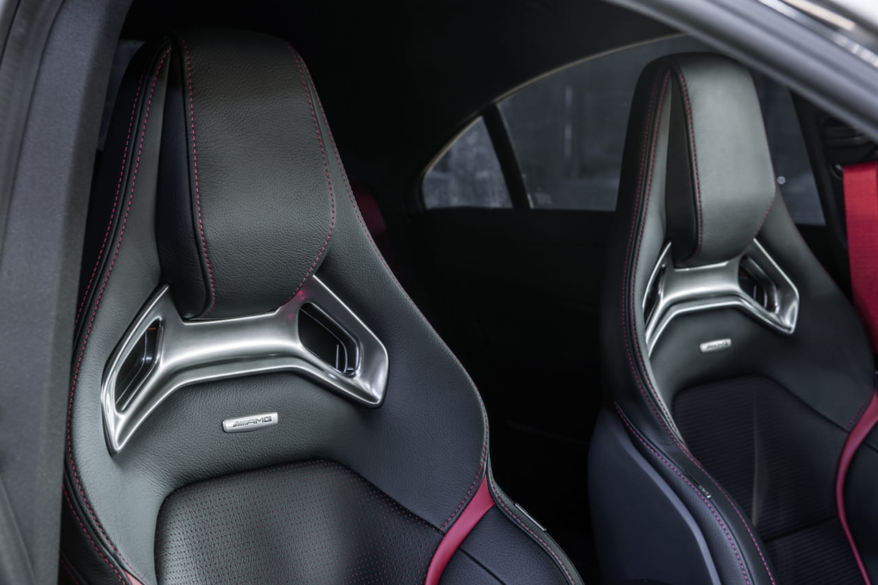 El exterior del Mercedes CLA 45 AMG recibe los paragolpes y taloneras del paquete AMG junto a unas llantas multiradio en negro tras las que contrastan las pinzas de freno en rojo. Sin duda, la vista de su zaga es la más prometedora, con 4 salidas de escape en una disposición de 2+2 perfectamente integradas en el difusor trasero.