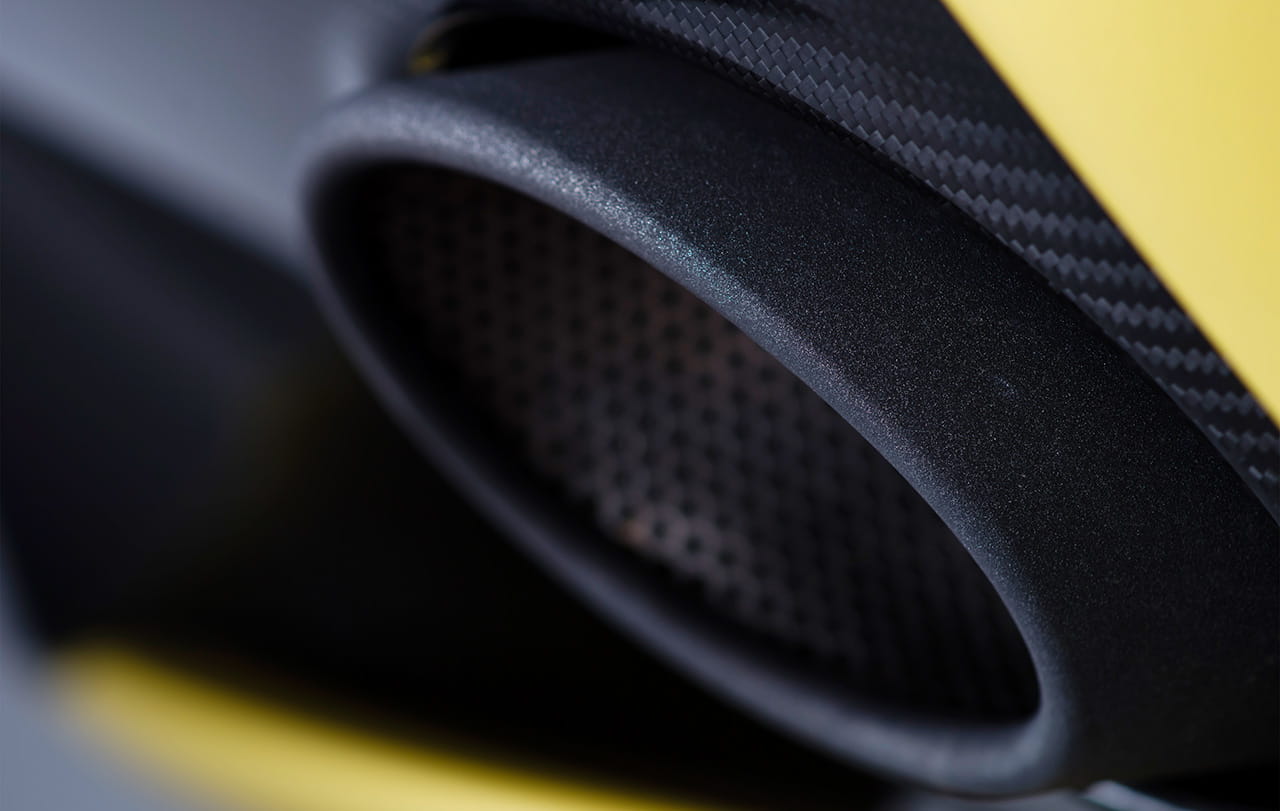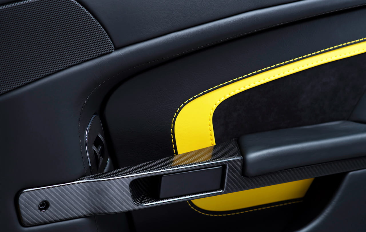 El Aston Martin Vanquish es fácilmente reconocible por su cuidado trabajo aerodinámico y detalles bastante agresivos como el splitter delantero, la abundancia de fibra de carbono o su alerón que a diferencia del antiguo Aston Martin DBS y el primer Vanquish no está integrado como spoiler en la propia tapa del maletero y cuenta con una hendidura que también le aporta bastante carácter.
