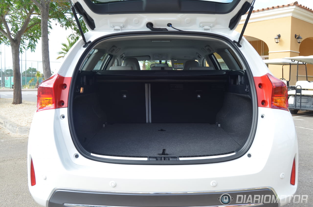 El Toyota Auris Touring Sports tiene una longitud de 4.560 mm, una anchura de 1.760 mm y una altura de 1.460 mm (1.475 mm en el caso de contar con los railes sobre el techo), con una distancia entre ejes de 2.600 mm. Su maletero, igual en todas las motorizaciones (las baterías del híbrido no restan espacio), es de 530 litros, 1.658 litros con los asientos traseros abatidos.