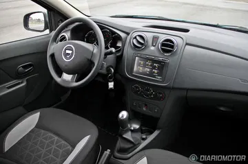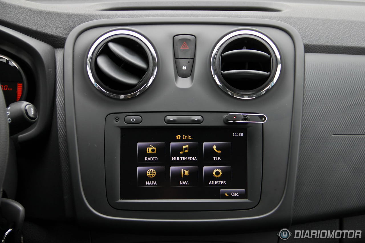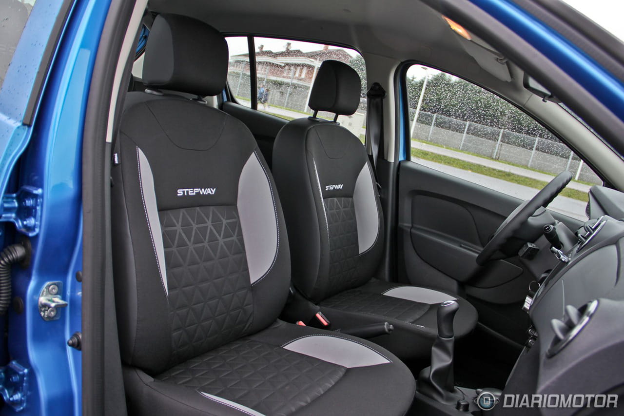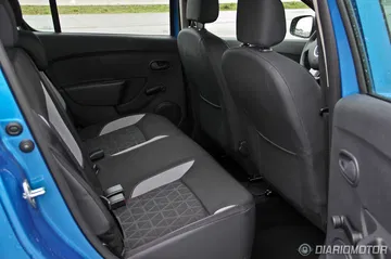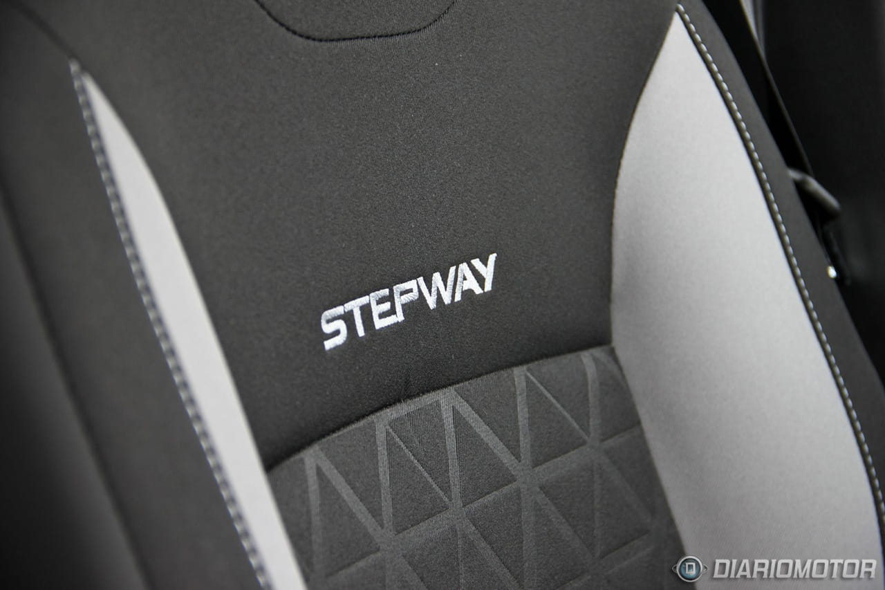 De serie todos los Sandero Stepway tienen el mismo equipamiento: llantas de 16 pulgadas, luces diurnas, faros antiniebla, tres reposacabezas traseros, elevalunas eléctricos delanteros, equipo de sonido y asiento trasero abatible en configuración 60/40. Y eso es todo. Si queremos más, hay que pagar por ello. Nuestra unidad equipa el interesante Pack Aire & Media Nav, que por 858€ incluye aire acondicionado, navegador con pantalla de 7 pulgadas y entrada auxiliar USB, manos libres Bluetooth y mandos de radio en columna de dirección.