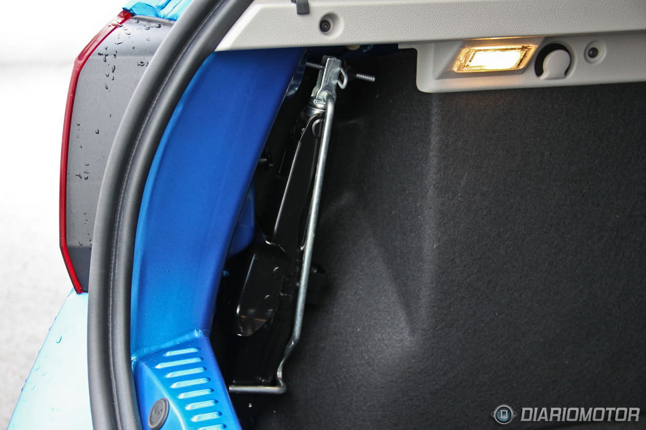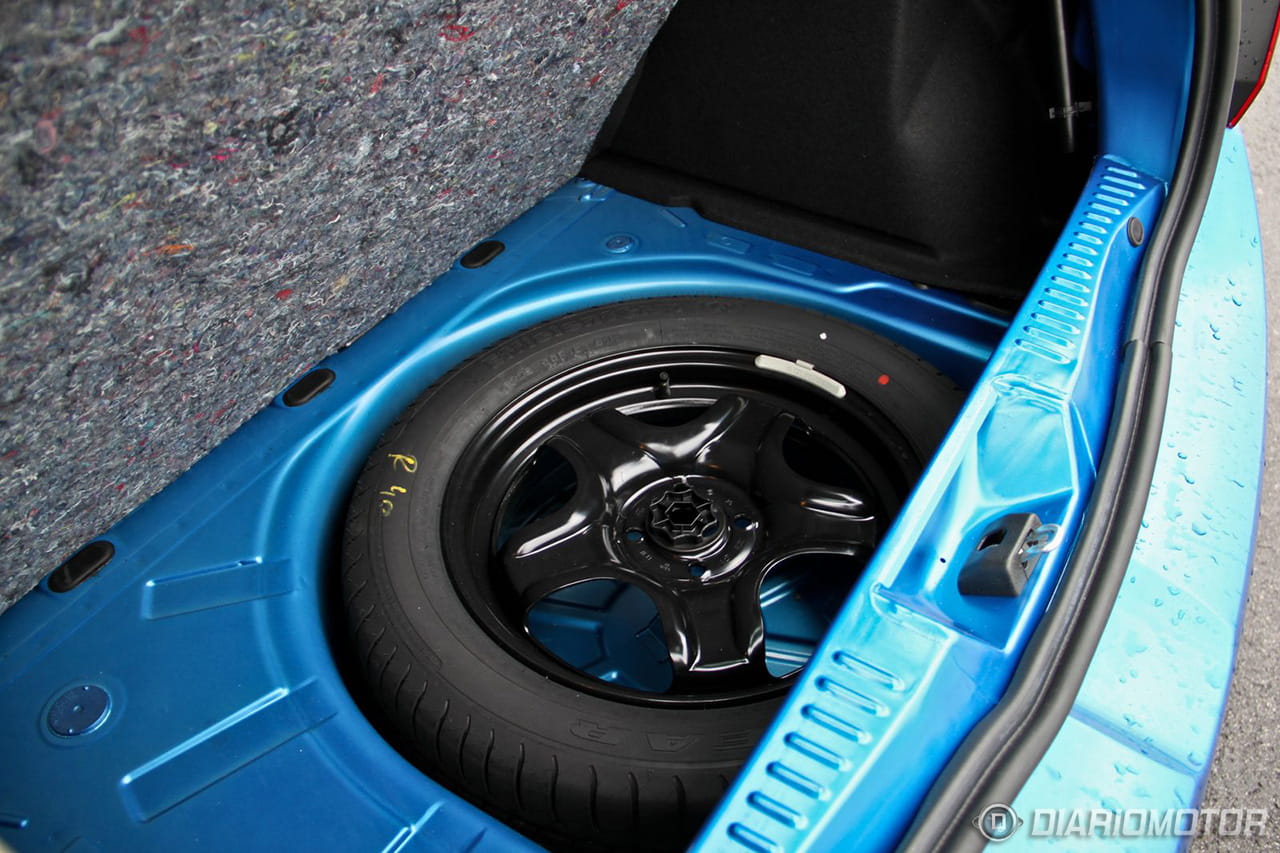 Además, nuestra unidad equipaba la rueda de repuesto completa – un extra de 98€ – y la pintura metalizada Azul Turquesa, por 333€. El cenicero también es opcional, y cuesta 97€. El precio base de un Dacia Sandero Stepway dCi 90 es de 12.400€. Con todos los extras – y con la carencia de volante regulable u ordenador de a bordo – el precio final de nuestra unidad es de 13.785€, corroborado por el configurador de la web española de Dacia. Un Dacia Sandero estándar equivalente – dCi 90 con acabado Laureate – cuesta 11.400€.