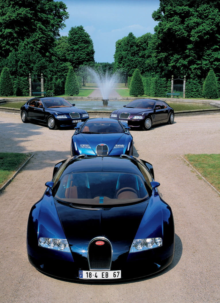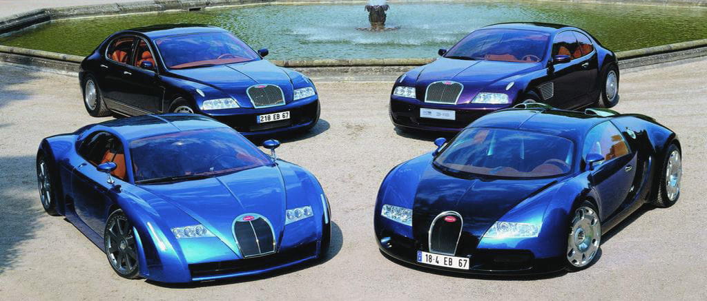 Aunque el Veyron definitivo corrió a cargo de los diseñadores de la casa, Bugatti llevaba años recurriendo a Giorgetto Giugiaro para perfilar el renacer de la marca, mucho antes incluso de que el Grupo Volkswagen se hiciera dueño y señor de los derechos del emblema de Molsheim. En 1993 se presentaba el Bugatti EB112 y seis años más tarde el Bugatti EB218 rescataba aquella idea original de la limusina recuperando los rasgos de otro prototipo muy representativo durante aquellos años, el Bugatti EB118.