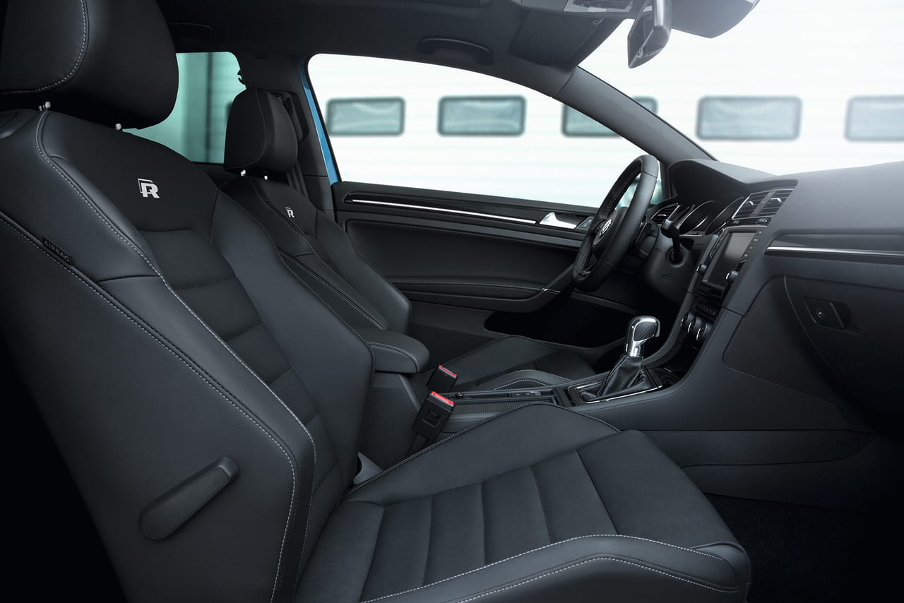 En su interior el Volkswagen Golf R cuenta con asientos deportivos en Alcántara, un volante de 3 radios en cuero, iluminación ambiental y pantalla táctil… Pero en Volkswagen aún se han reservado las imágenes de su habitáculo.