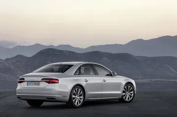 Al margen de estas mecánicas nos encontramos con 3 alternativas especiales. Por un lado el Audi A8 híbrido, que equipado con un bloque 2.0 TFSI de 4 cilindros y un bloque eléctrico consigue una potencia total de 245 caballos, así como un par de 480 Nm. En esta versión no nos encontramos tracción quattro, toda la potencia queda entregada al eje delantero. En modo totalmente eléctrico, con unas baterías de iones de litio que se sitúan en la parte posterior, se consigue una autonomía de 3 kilómetros, consiguiendo un consumo medio de 6.3 l/100 km.