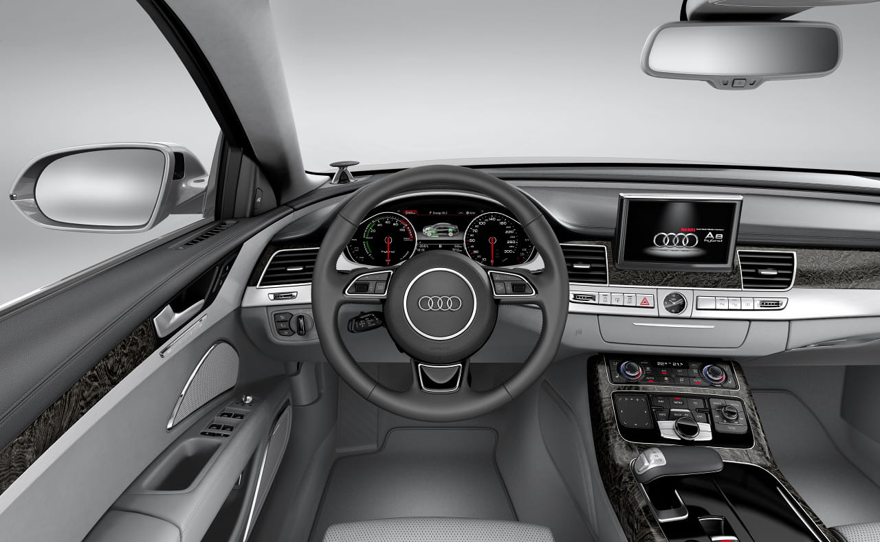 Como novedad en el habitáculo del Audi A8, además del nuevo sistema multimedia Audi Connect del que buena cuenta daremos más adelante, nos encontramos con nuevas opciones de tapicerías para los asientos, así como nuevas inserciones de madera, plata y madera o “Unikat cuero”. Por supuesto se pueden contar con los servicios de Audi Exclusive para darle al interior el acabado individual que queramos.