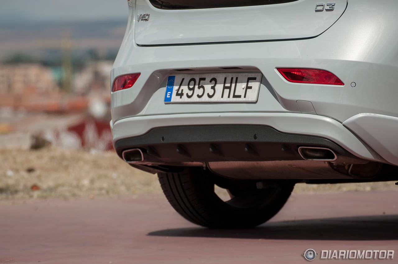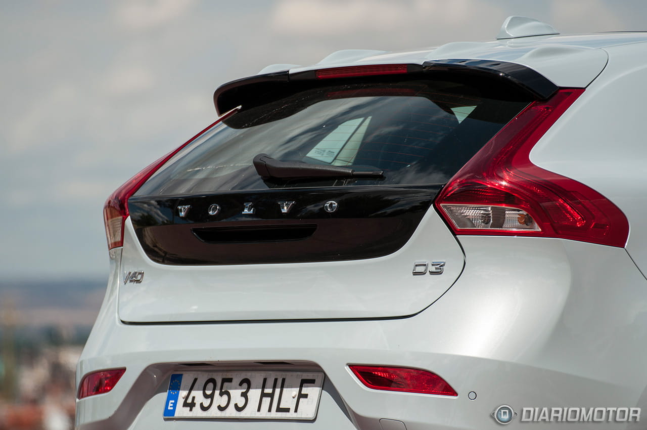 El Volvo V40 por su parte derrocha estilo sueco por los poros. Su línea lateral acentúa el porte robusto y en la zaga nos encontramos con los detalles más característicos de que siempre hace gala Volvo en sus modelos con portón trasero. La luneta se ha integrado en una superficie negra que completa un portón, quizás demasiado pequeño para facilitar la maniobra de carga, pero perfectamente integrado en lo que a estética se refiere con el diseño en forma de boomerang de los pilotos traseros. Aunque sea un enorme cliché, no es menos cierto que este V40 agradece – a nivel estético – la instalación de una gran llanta como las de 18” que montaba nuestra unidad de pruebas.