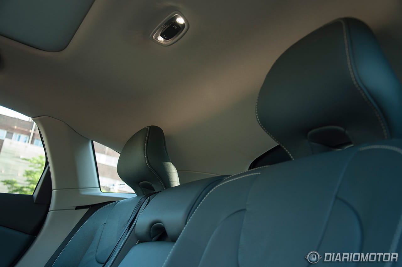 Mientras el más básico parte con climatizador monozona y llantas de acero, el Kinetic ya añade asiento con seis ajustes, climatizador bizona, llantas de aleación de 16” y revestimientos de cuero en volante, pomo del cambio y del freno de mano. El Momentum hace lo propio con arranque sin llave, control de velocidad constante, volante multifunción y sensor de lluvia con detección de túnel. Pero en el caso del modelo de nuestra prueba, el Summum, ya contamos con faros de xenon activos, lavafaros, llantas de 17”, iluminación diurna LED, tapicería de piel (tapizado Charcoal/azul en nuestro caso) y reposabrazos deslizante.