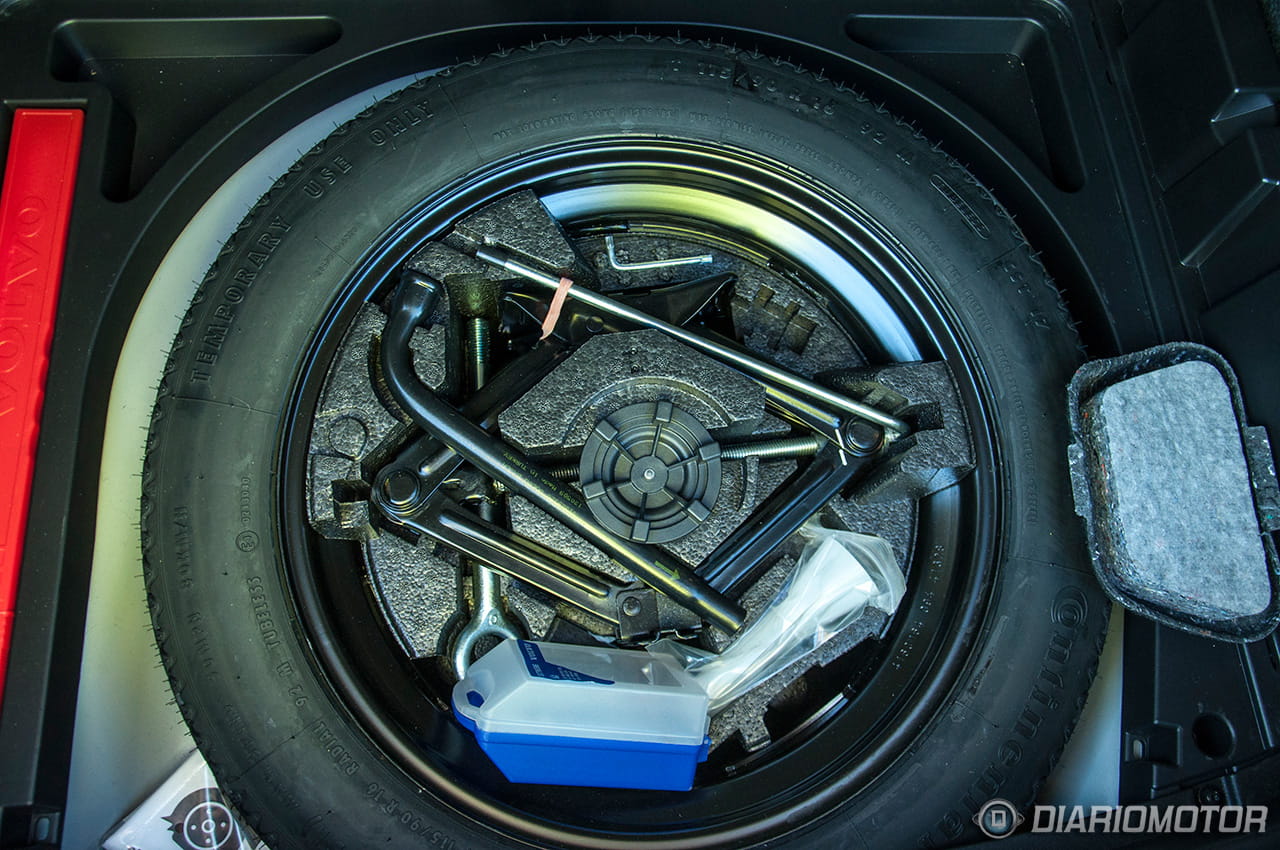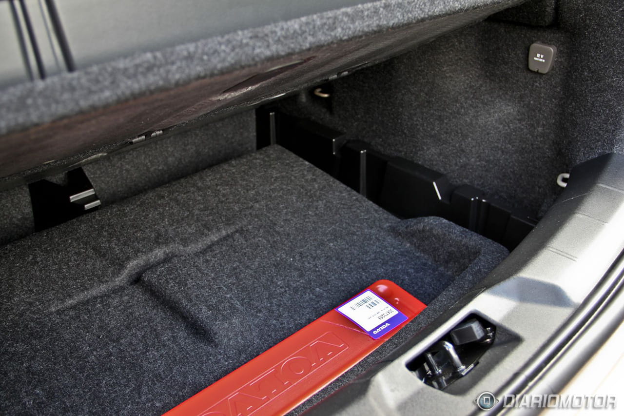 El espacio de carga del maletero es voluminoso, pero no el que más, con 335 litros de capacidad. La base del maletero cuenta con un práctico doble fondo al que se accede mediante una bandeja y bajo la cual de serie nos encontramos unos receptáculos para alojar objetos de poco volumen y un kit de reparación de pinchazos. Por suerte en nuestro caso, que durante la prueba sufrimos un reventón irreparable, contábamos con la rueda de repuesto opcional que cuesta 62 euros adicionales y elimina los receptáculos anteriormente mencionados, pero al menos nos evitó el mal trago de recurrir a una grúa.