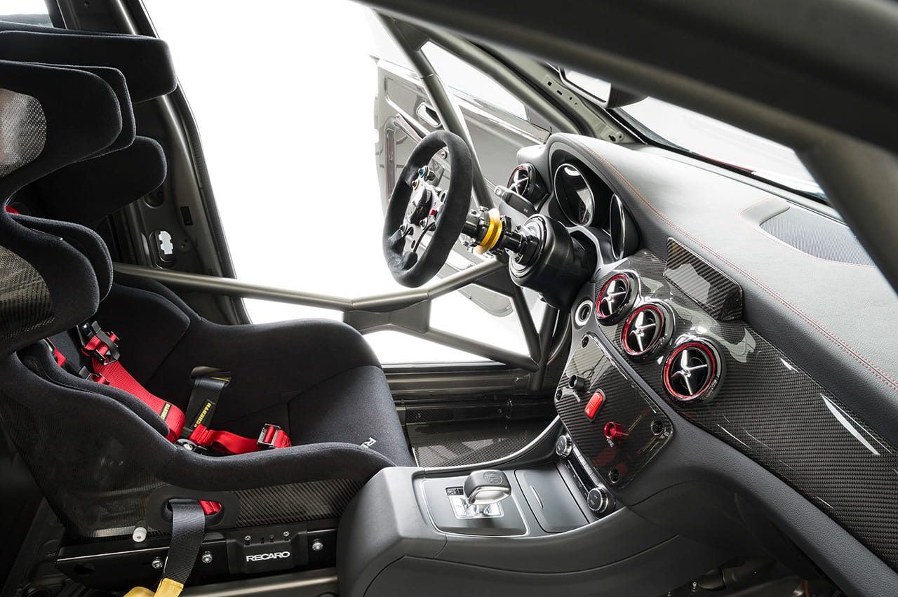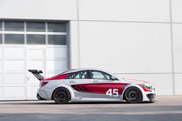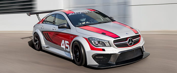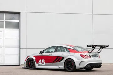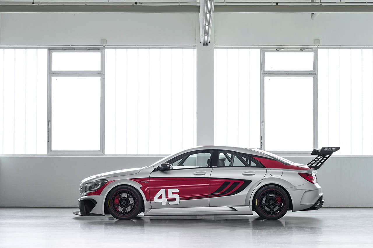 El Mercedes CLA 45 AMG Racing Series de momento no deja de ser un prototipo, un modelo de serie modificado y prácticamente a punto para recibir la homologación que acreditaría su candidatura en cualquiera de las carreras en las que compiten turismos con motores de 2.0 litros. Este CLA ha sido equipado con la correspondiente jaula de seguridad, buckets Recaro con soporte para HANS, arneses, revestimientos de fibra de carbono y un habitáculo espartano, pero con todos los elementos necesarios para la labor de un deportivo de carreras.